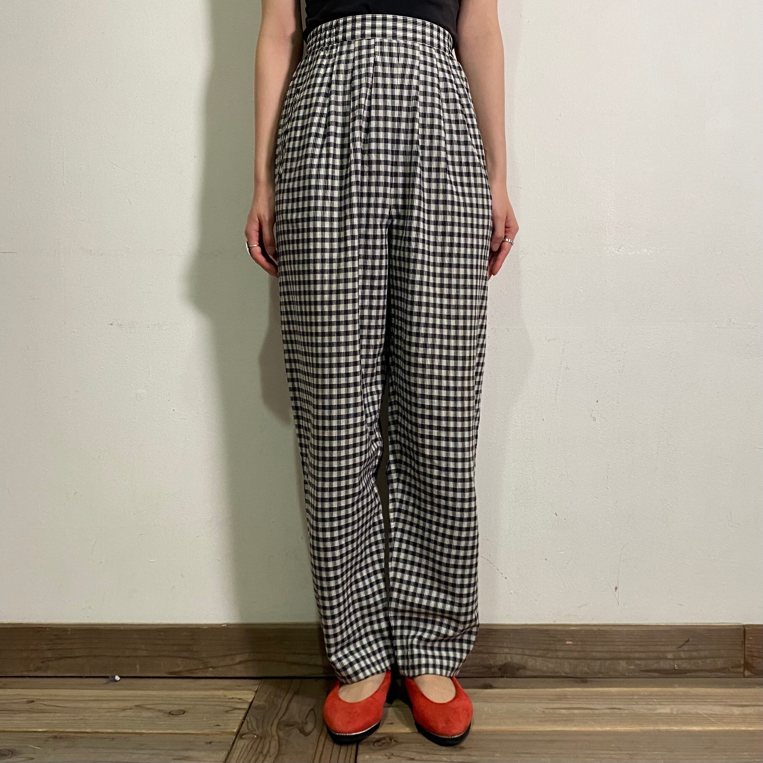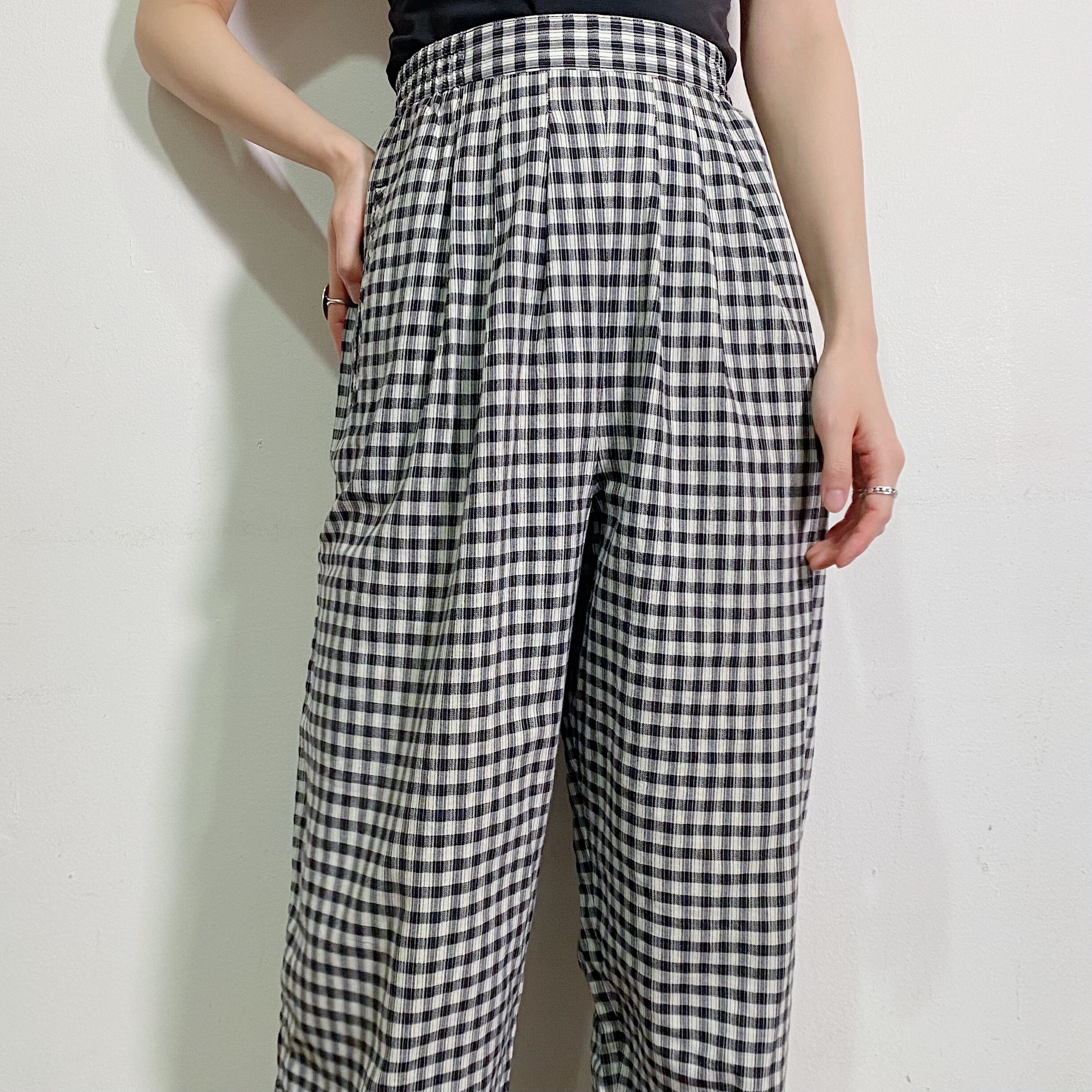 ブラック×ホワイトのギンガムチェックが可愛い、90年代のイージーパンツです。