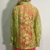 ライムグリーンの色合いが可愛い、花柄のシアーシャツです。