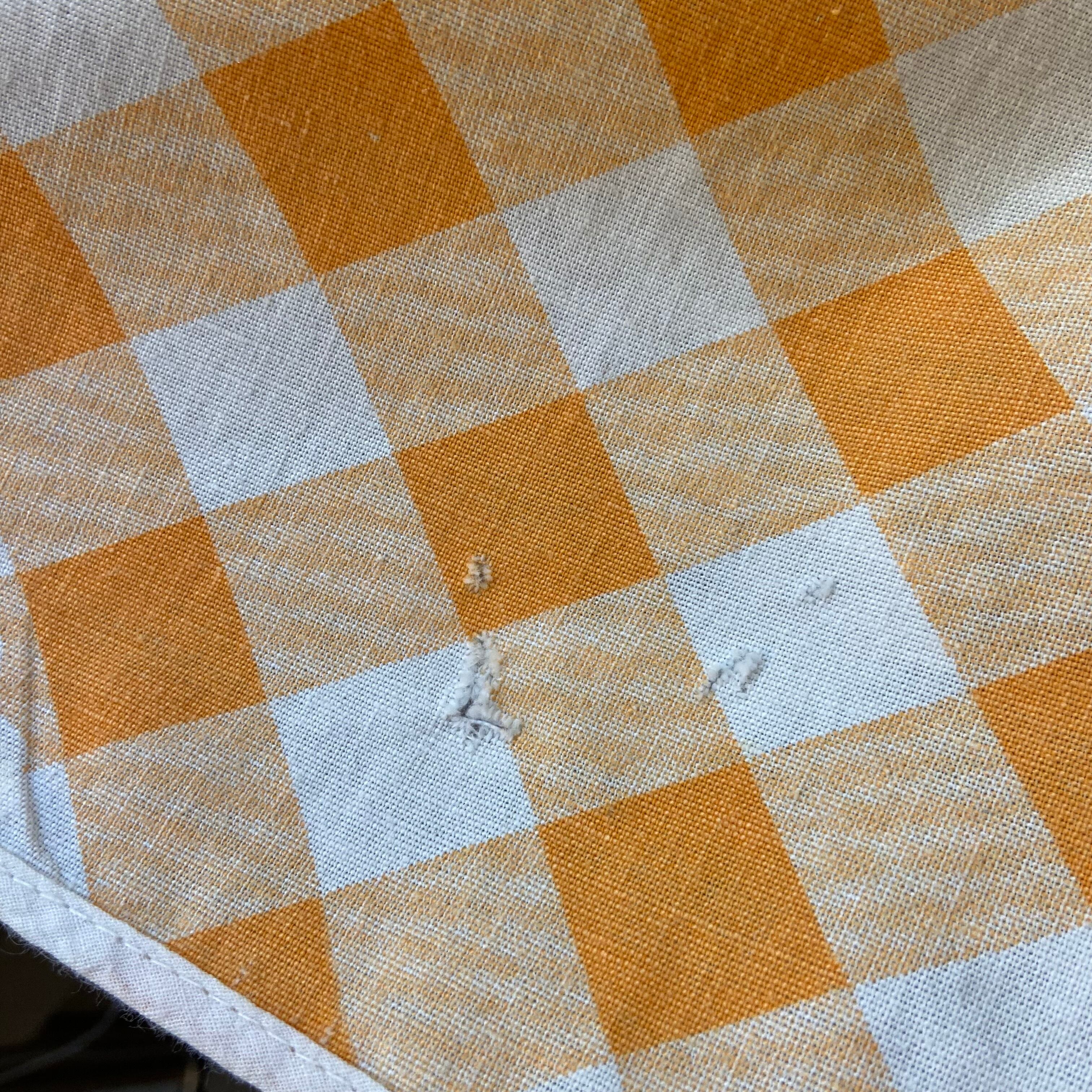 裾にはダメージを裏から接着芯で塞いだ跡が見受けられますが、あまり目立ちません。