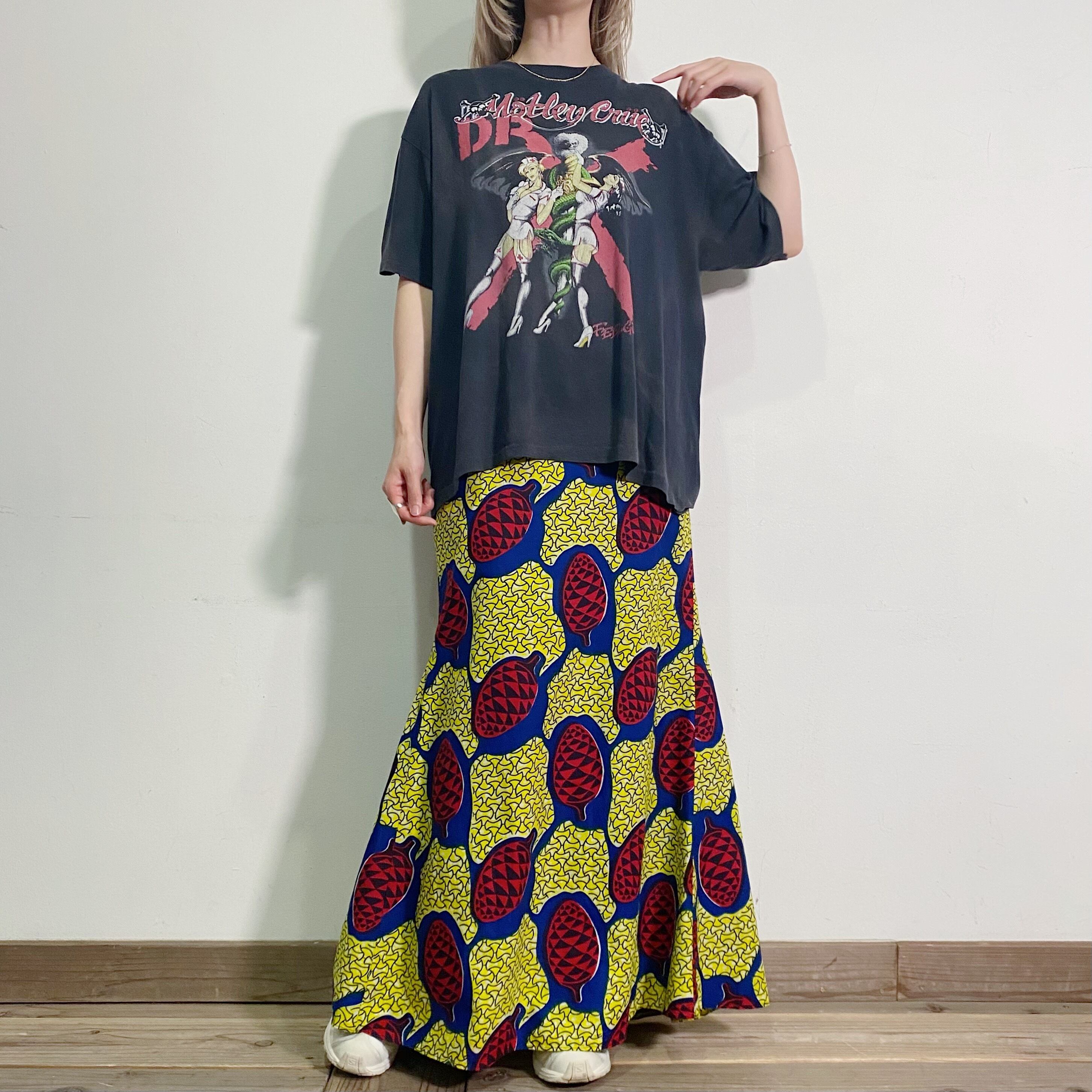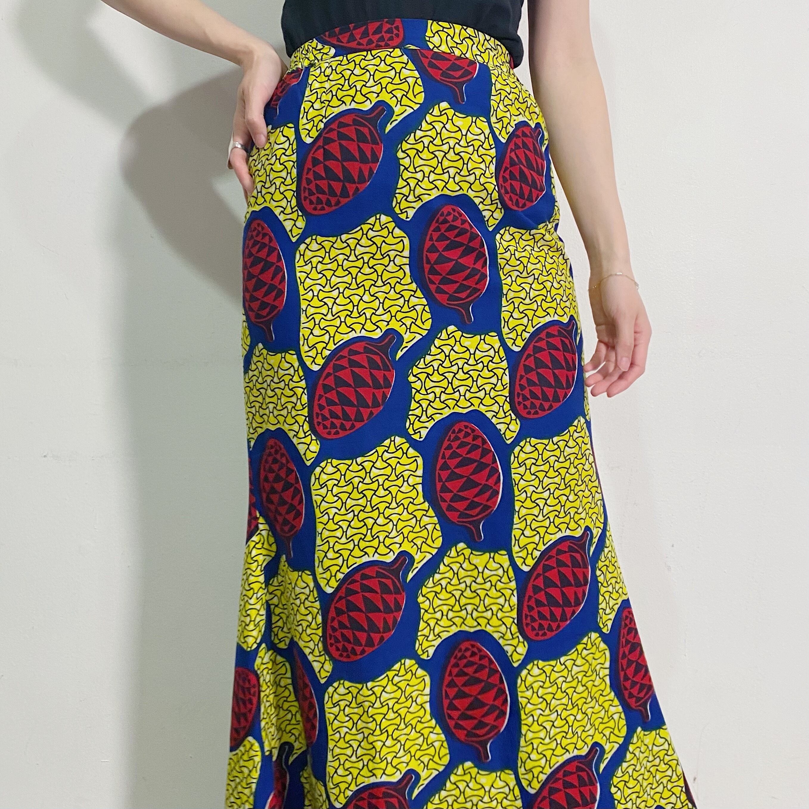 イエローベースにレッドやブルーの色合わせが可愛い、アフリカンバティックのスカートです。