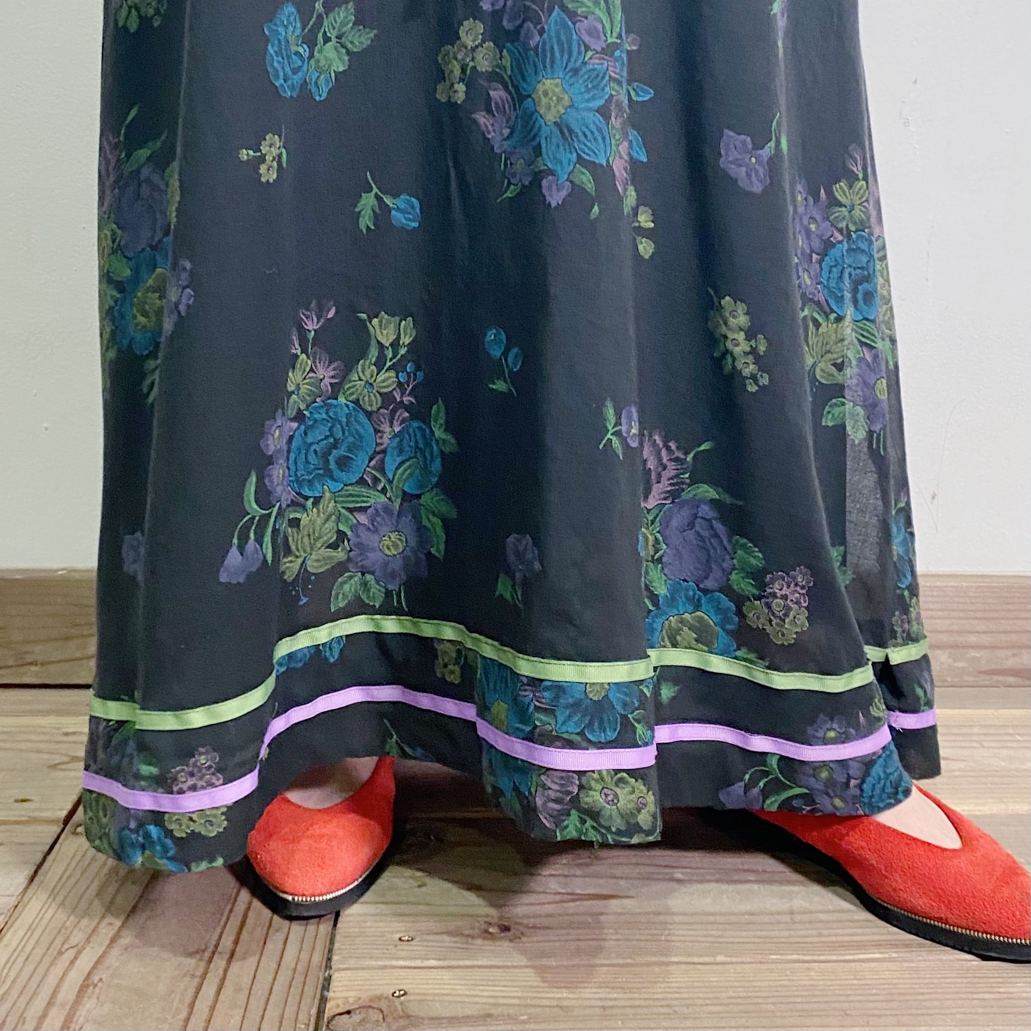 ブラックベースで大人可愛く着られる70sワンピースです。