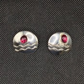 光に当たって綺麗なピンクの樹脂が可愛い、925シルバーのピアスです。