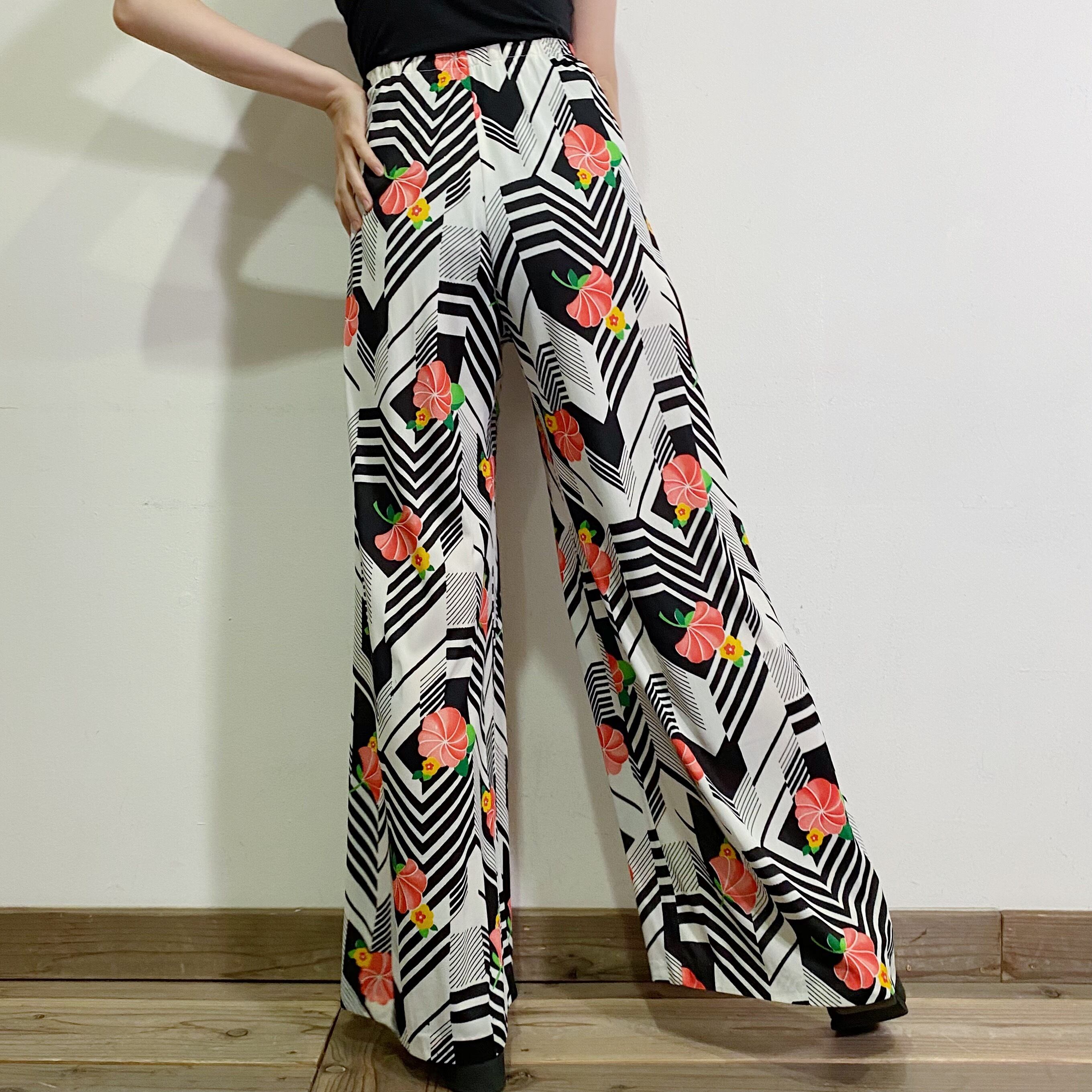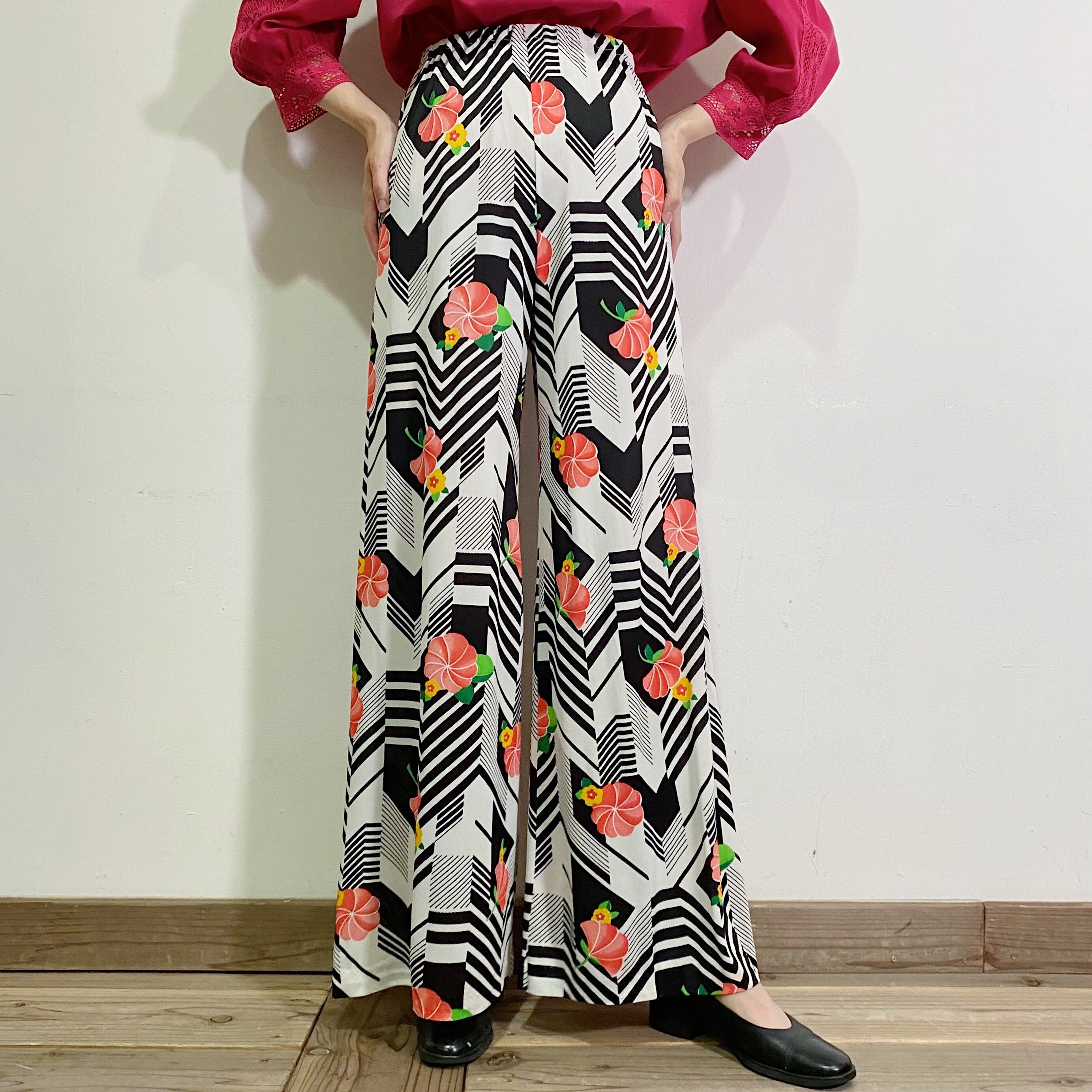 モノトーンカラーベースに花柄が可愛い、70年代のパンツです。