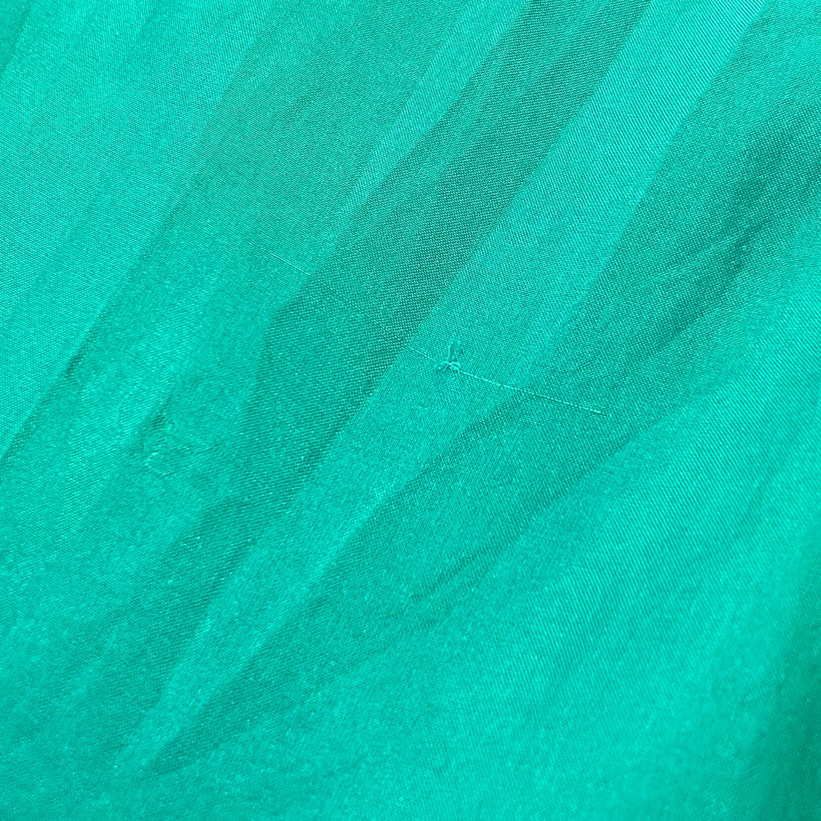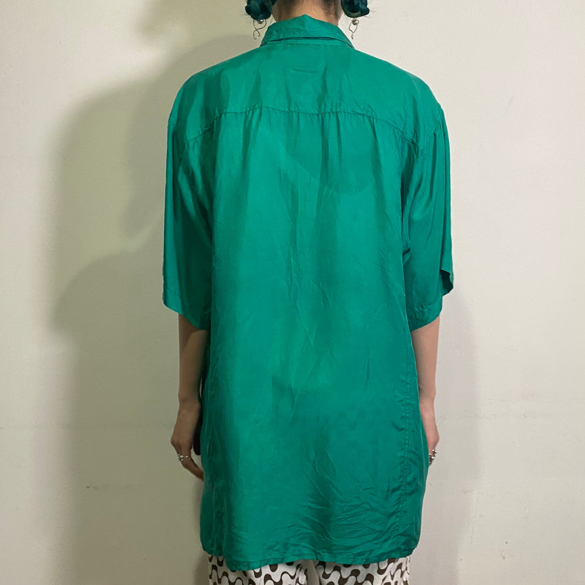 明るいグリーンの色合いが可愛い、シルク素材の半袖シャツです。