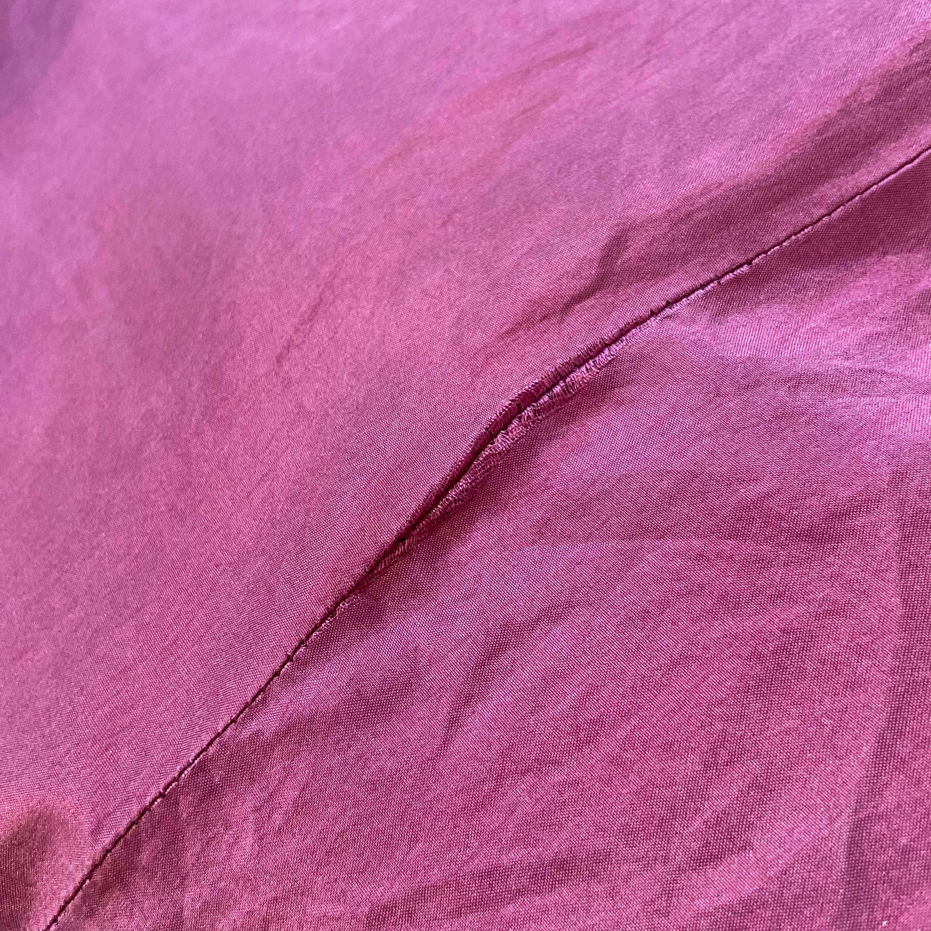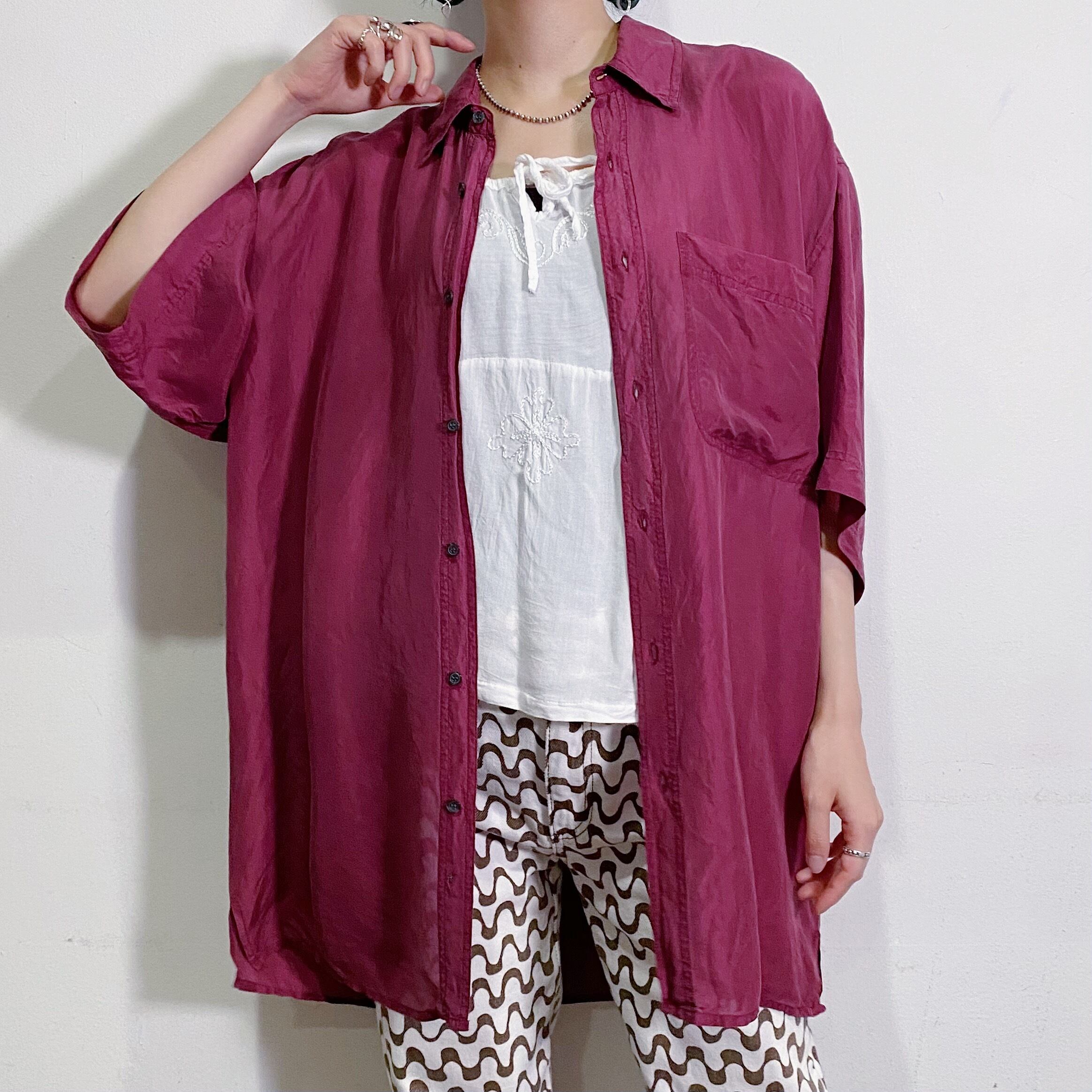 ワインレッドの色合いが素敵な、シルク素材の半袖シャツです。
