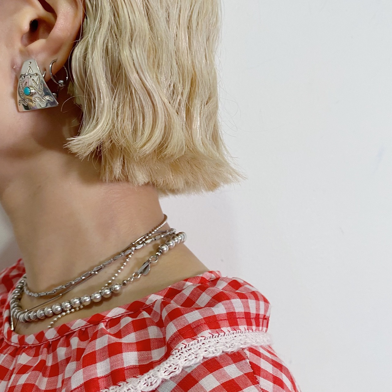 ネイティブアメリカンジュエリーのようなデザインが魅力的。