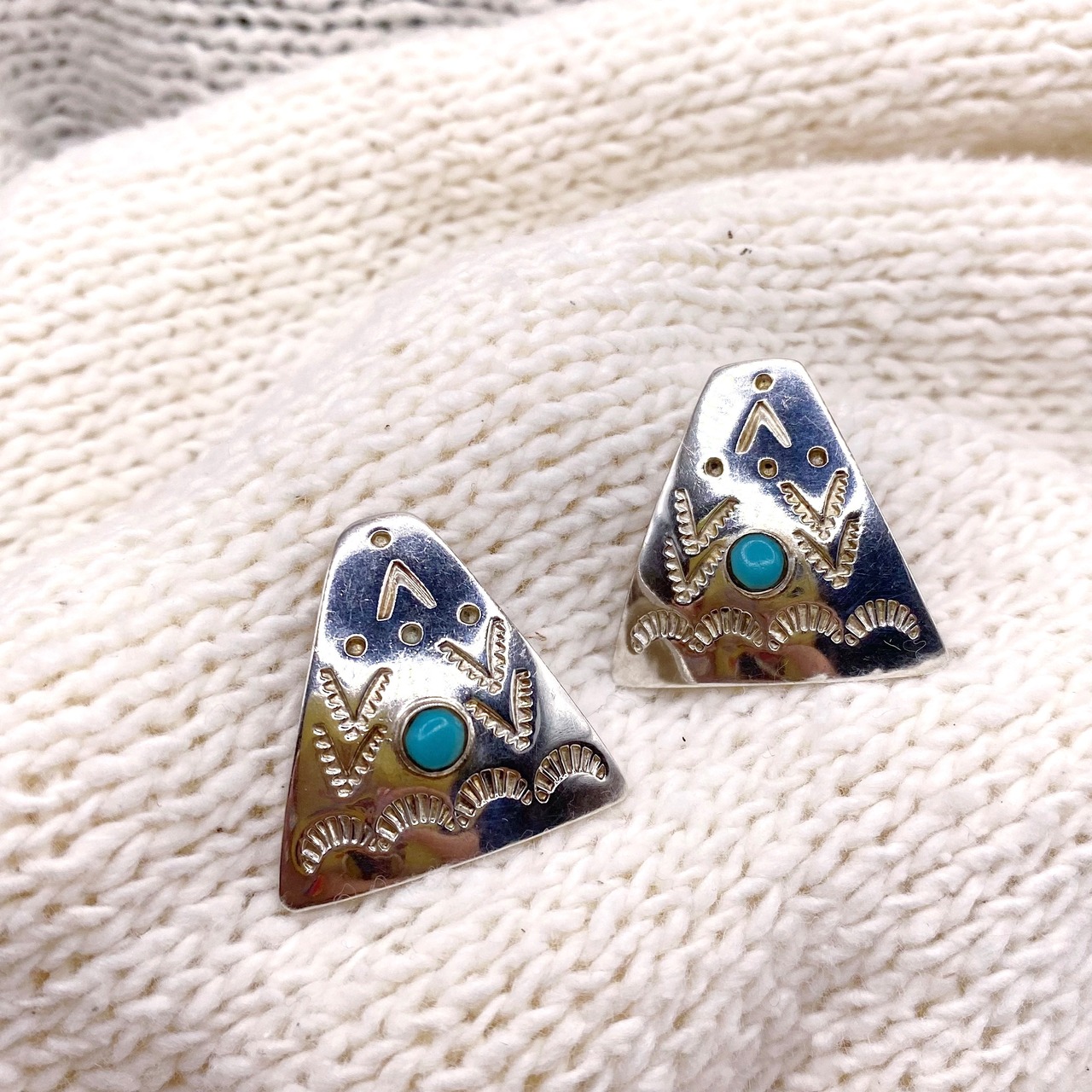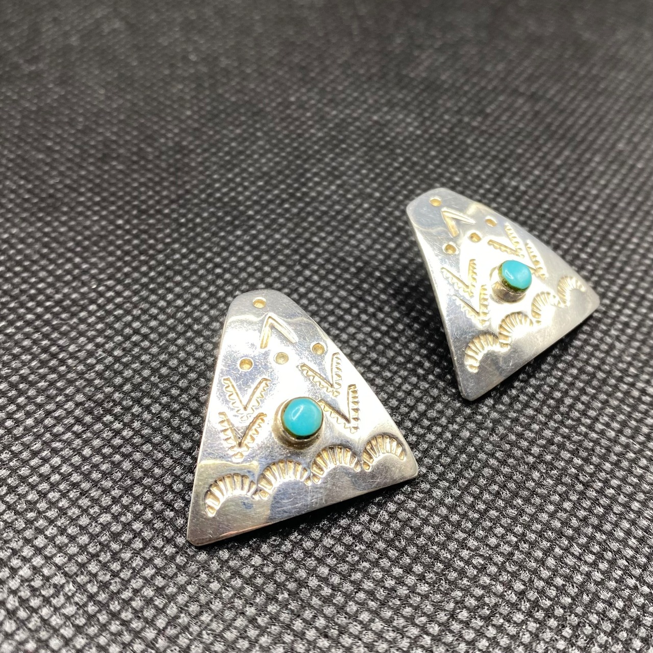 小さなターコイズとスタンプワークの組み合わせが可愛い、スターリングシルバーのピアスです。