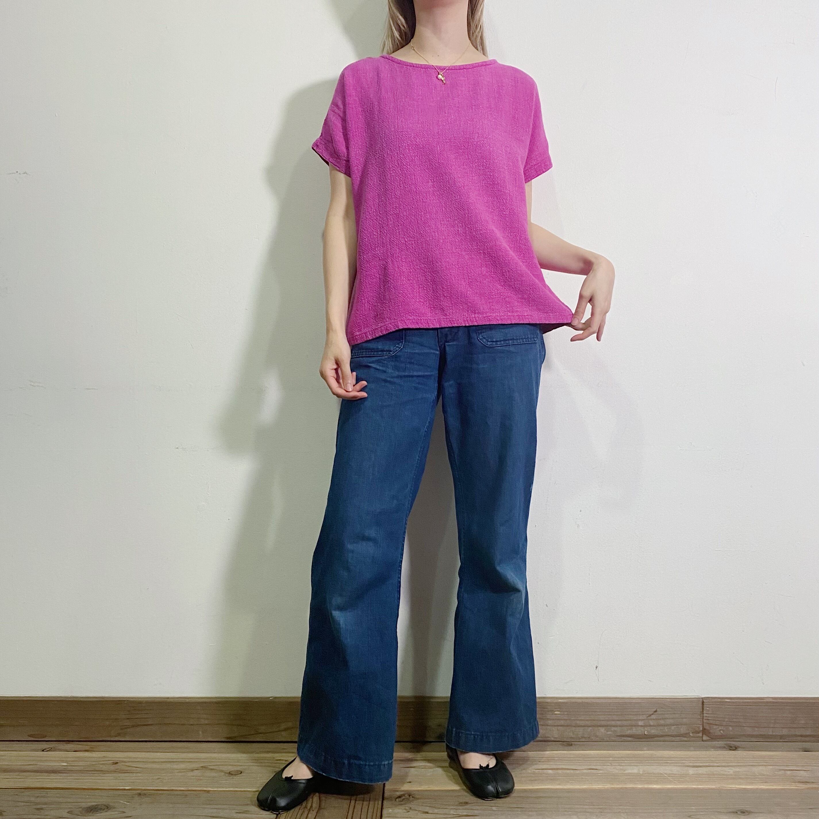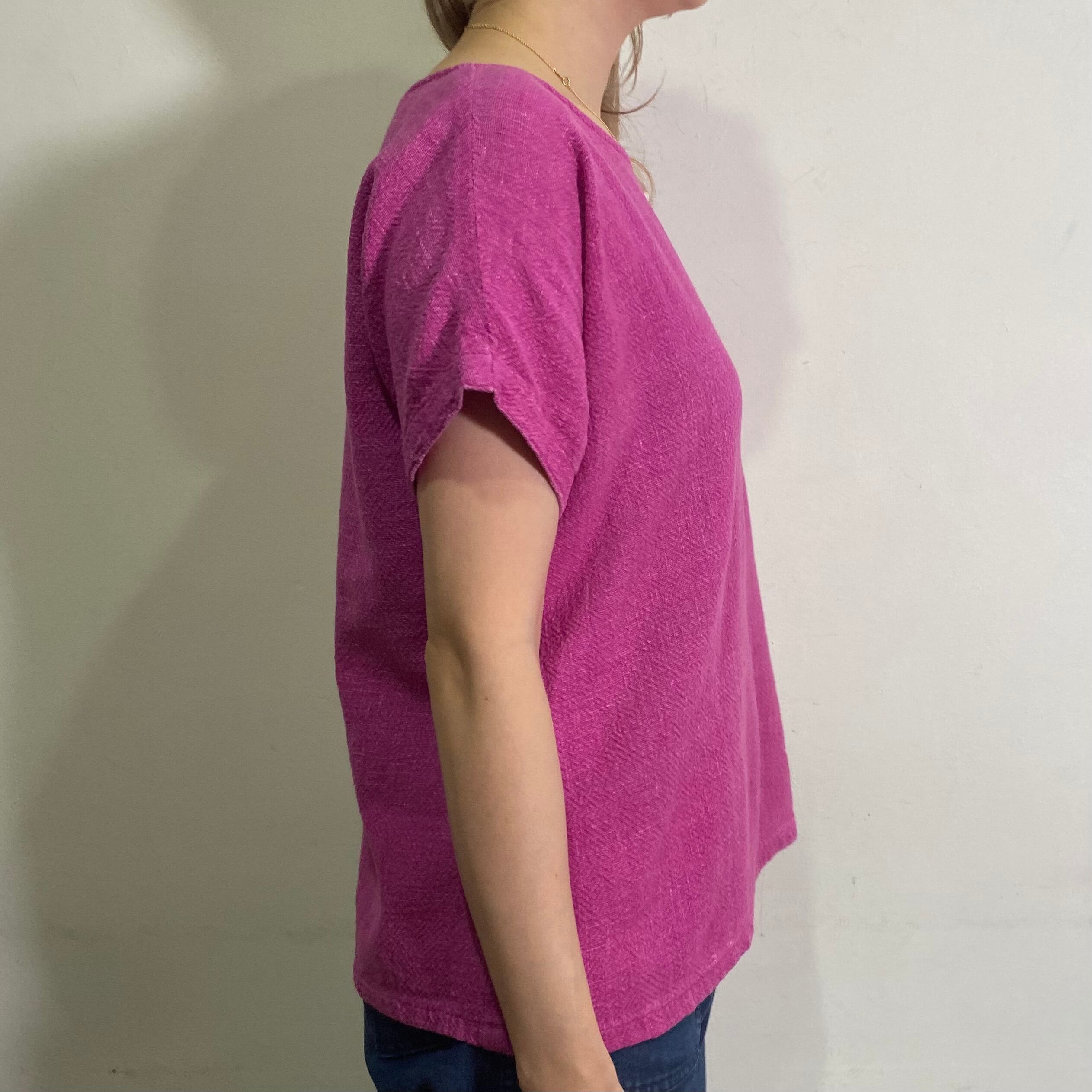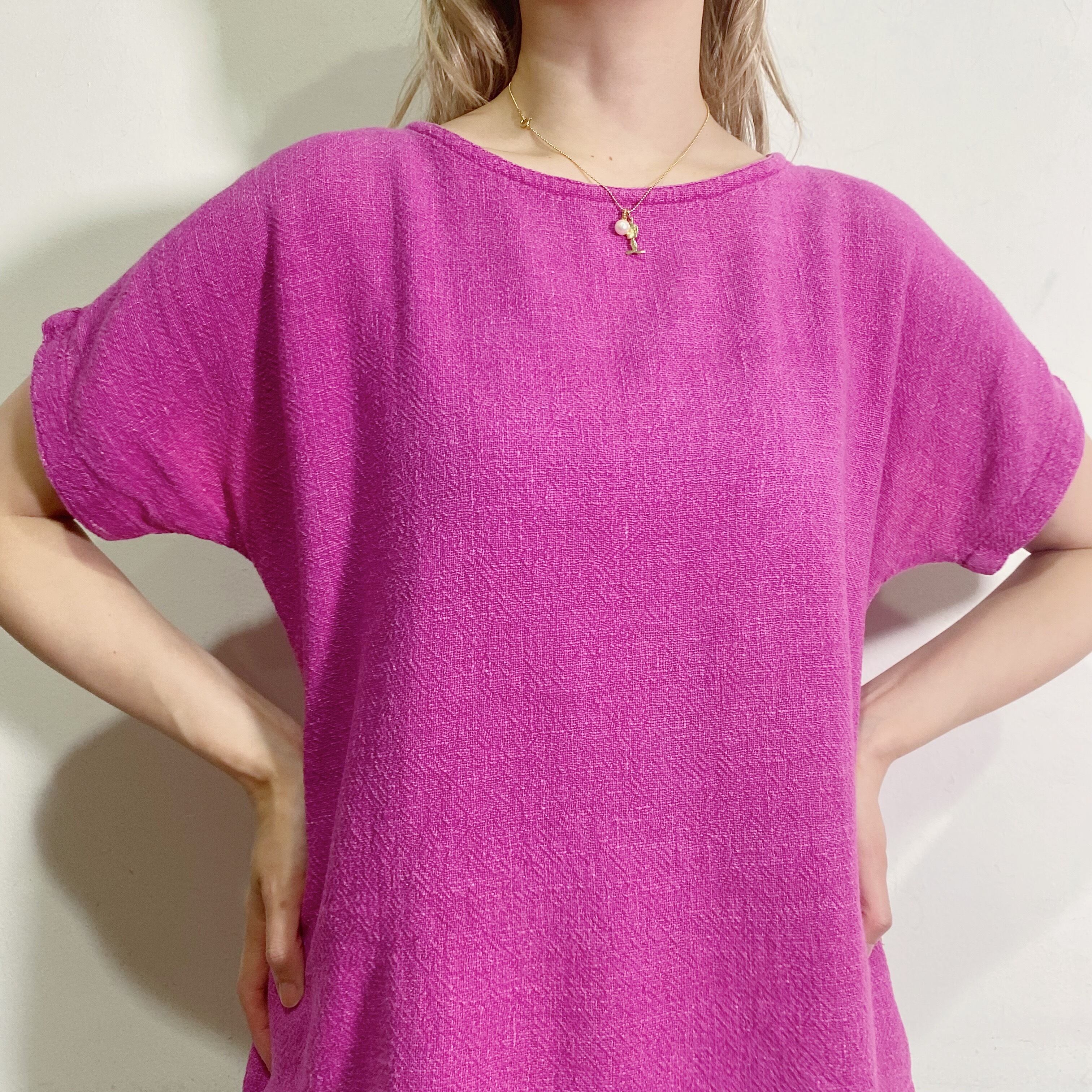 パープルとピンクの中間のような絶妙な色合いが可愛い、70年代の半袖トップスです。