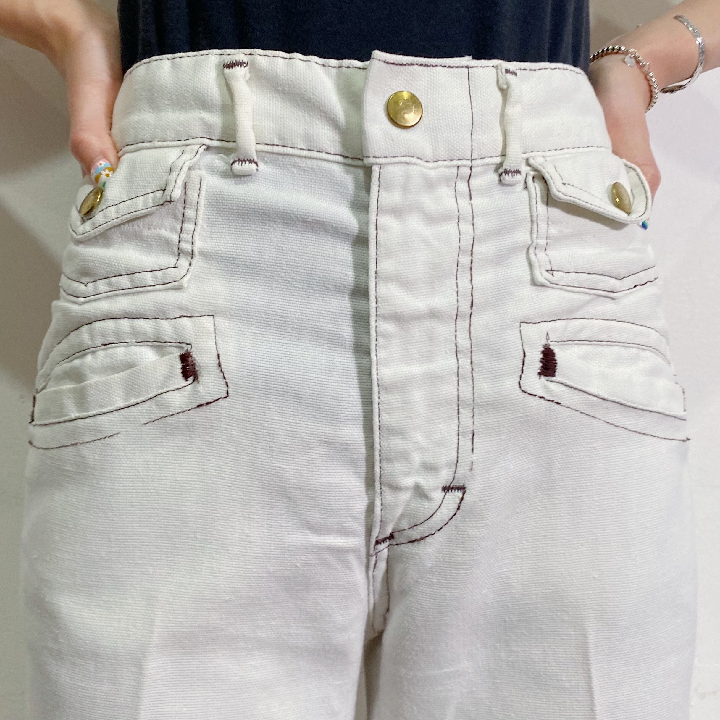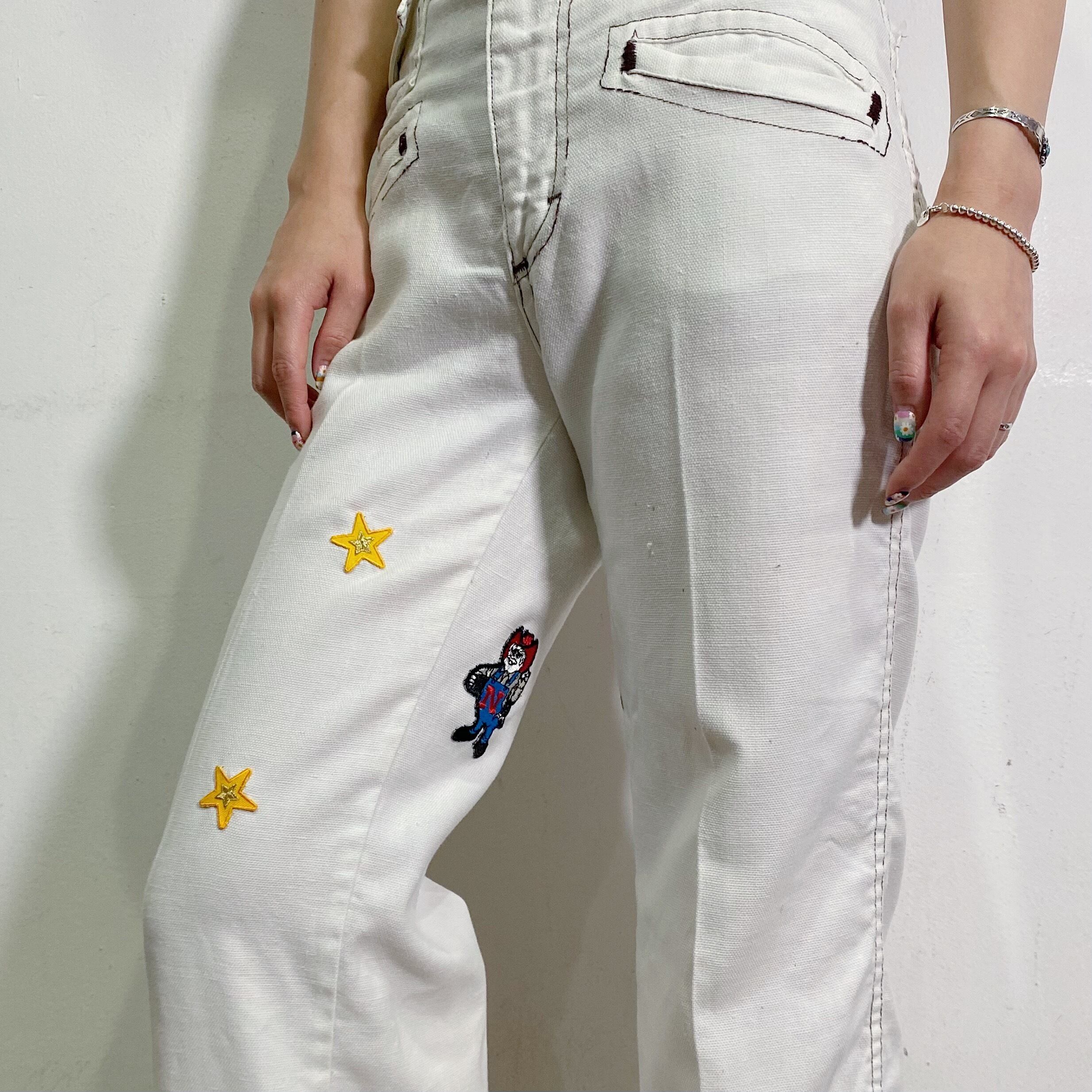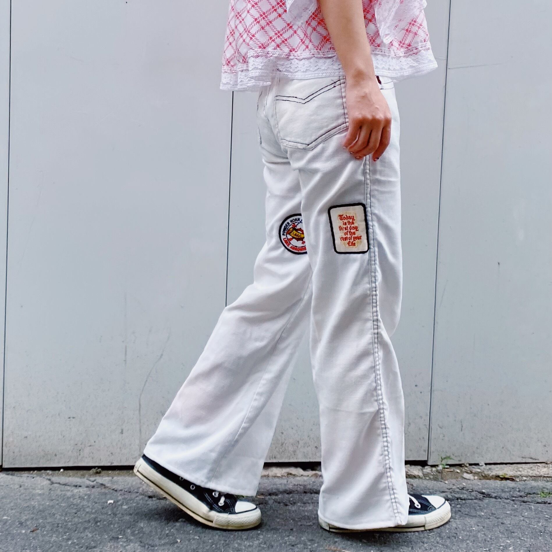 70s white patch flare pants
