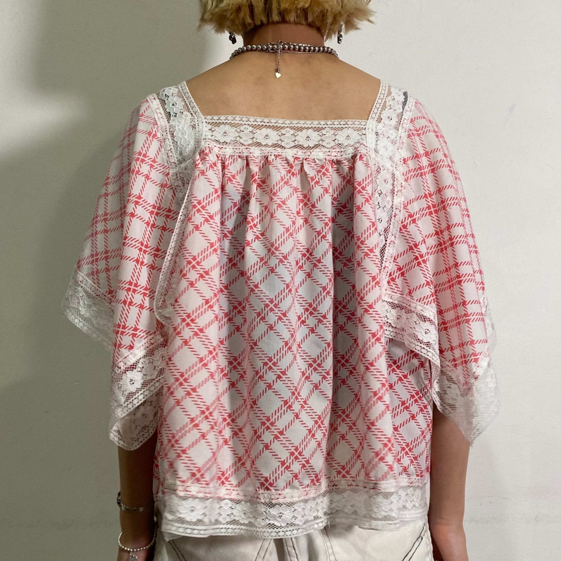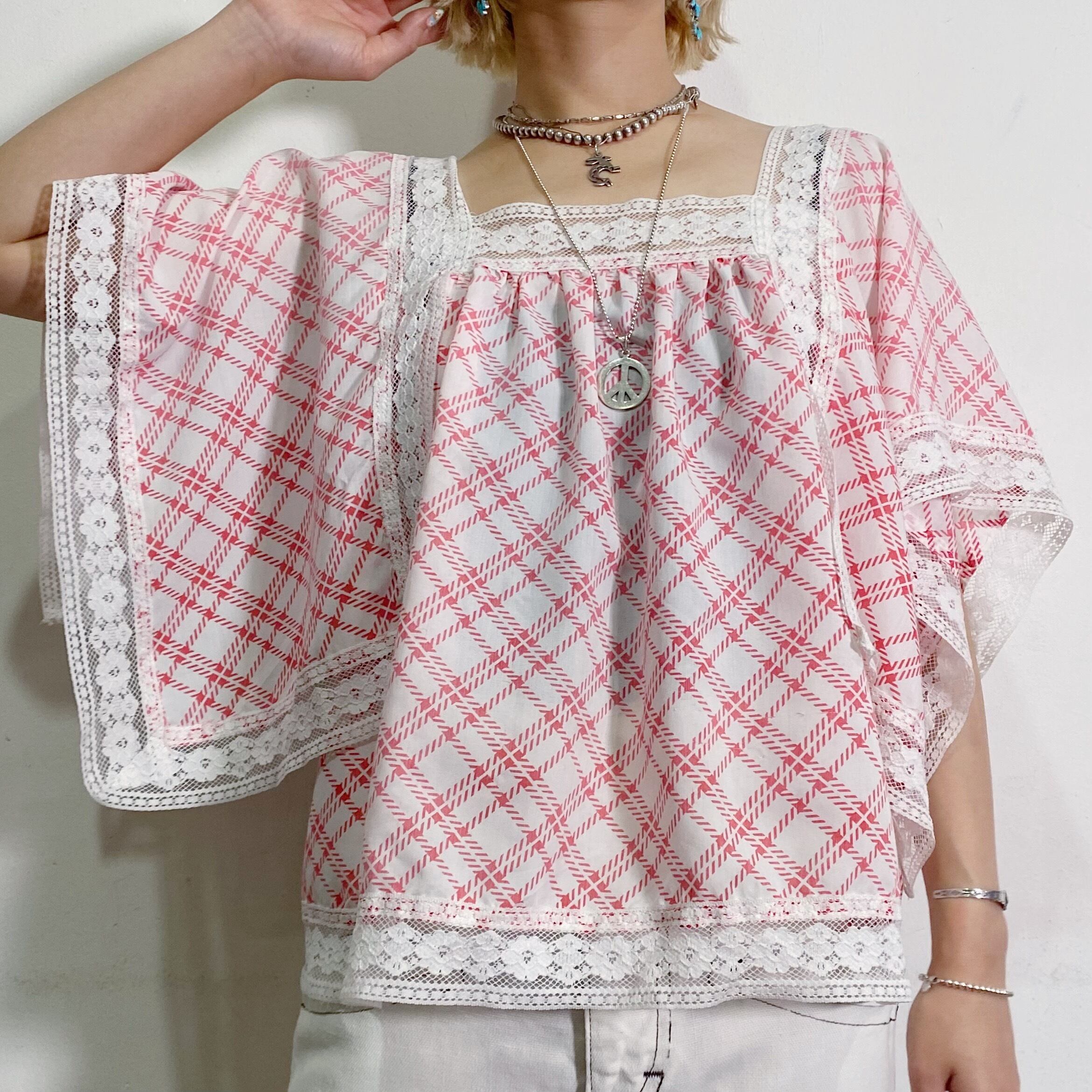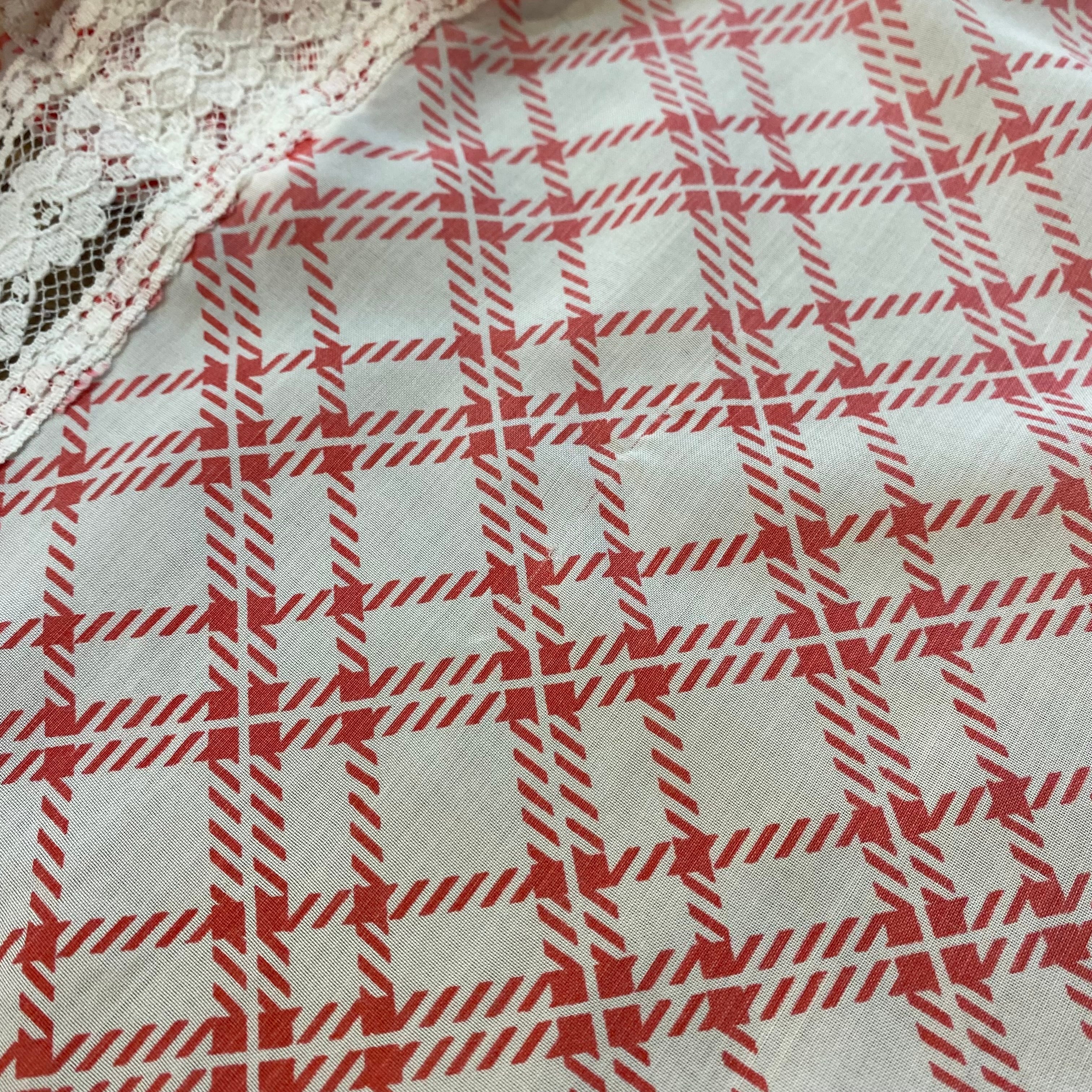 赤白チェックと花模様のレースが可愛い、70年代のチュニックです。
