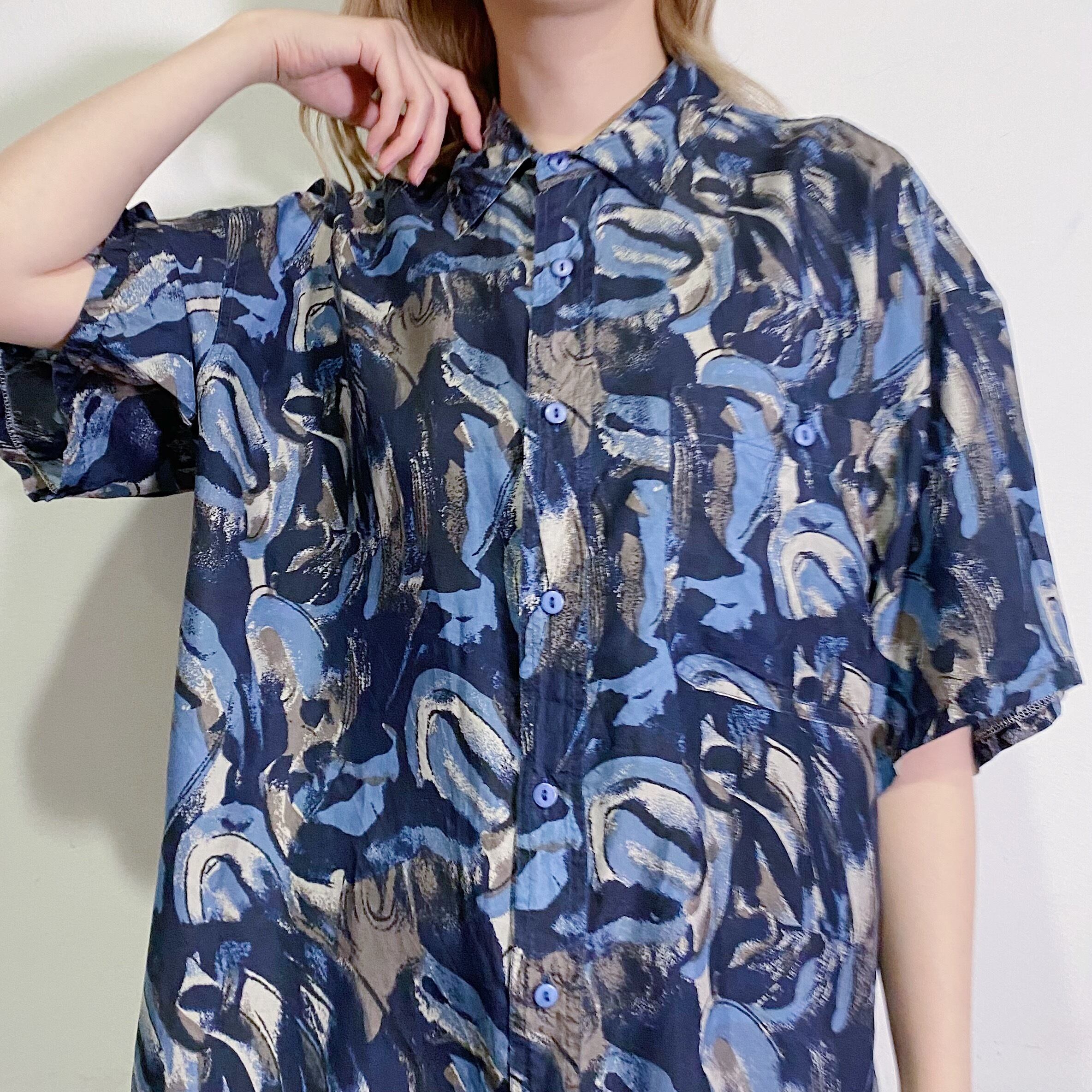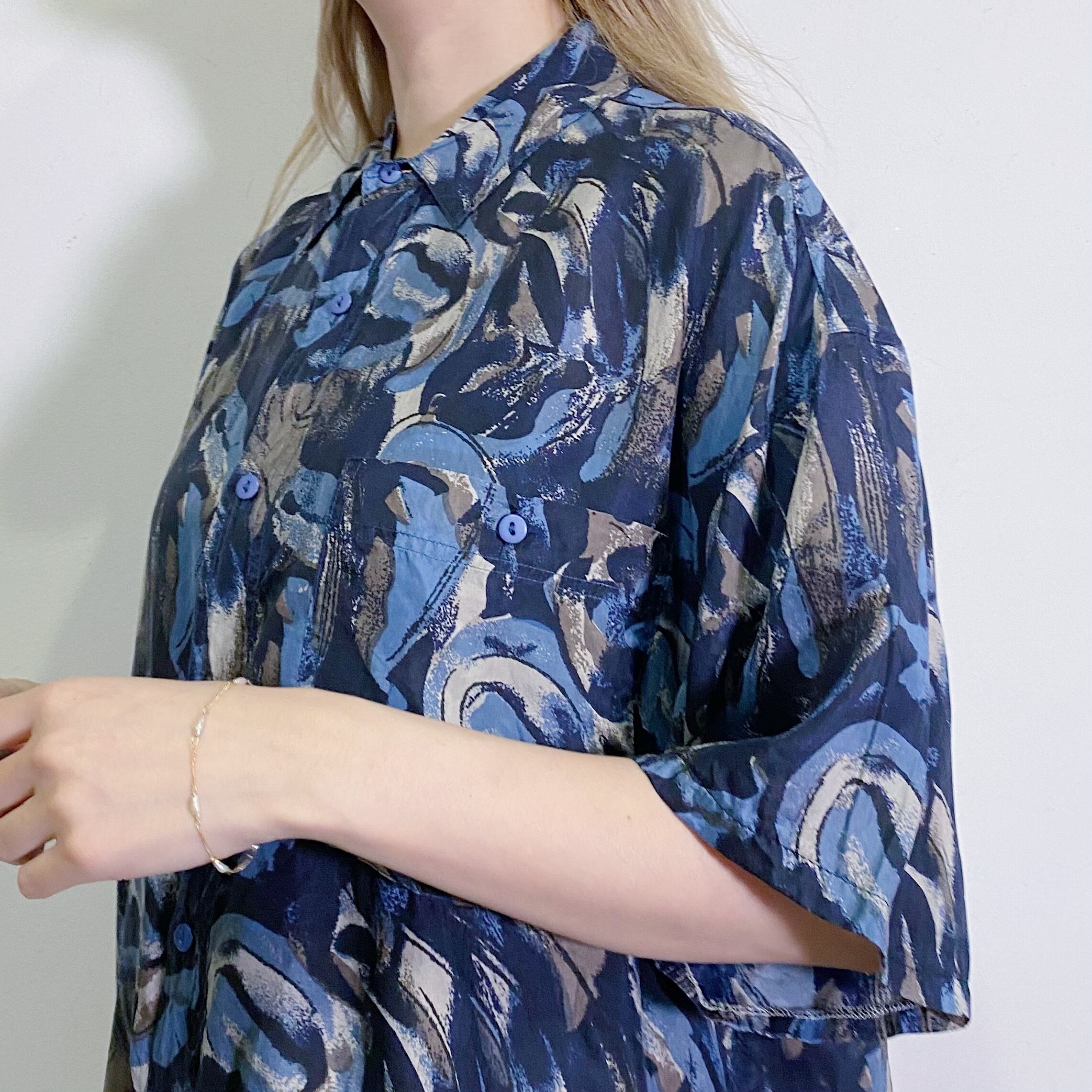 アーティスティックな柄が雰囲気たっぷりの、シルクの半袖シャツです。