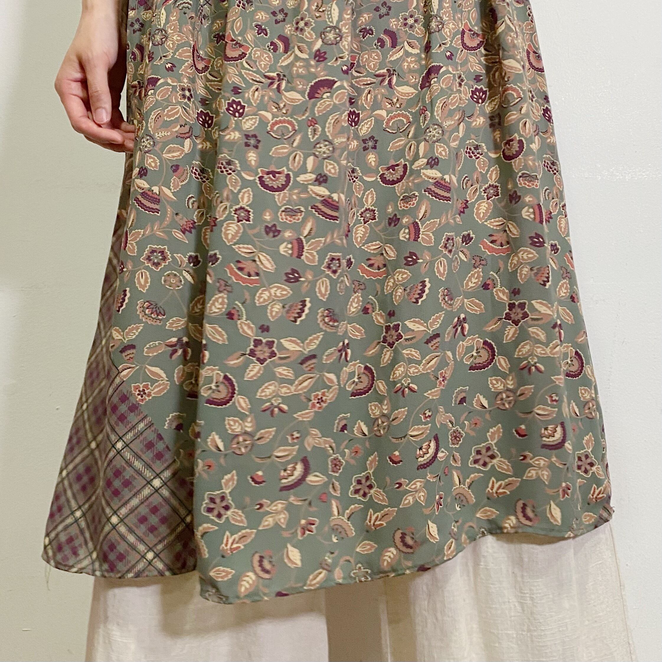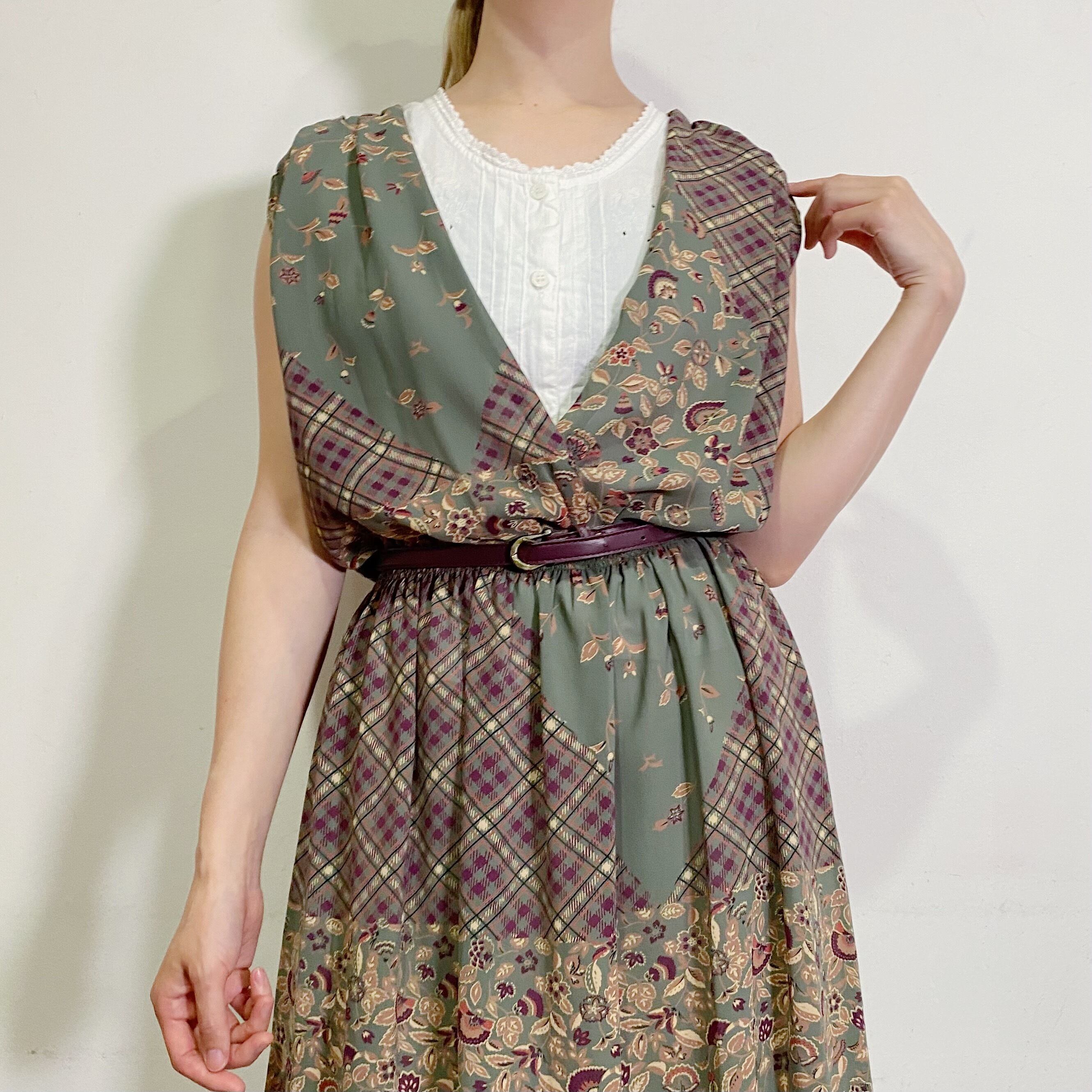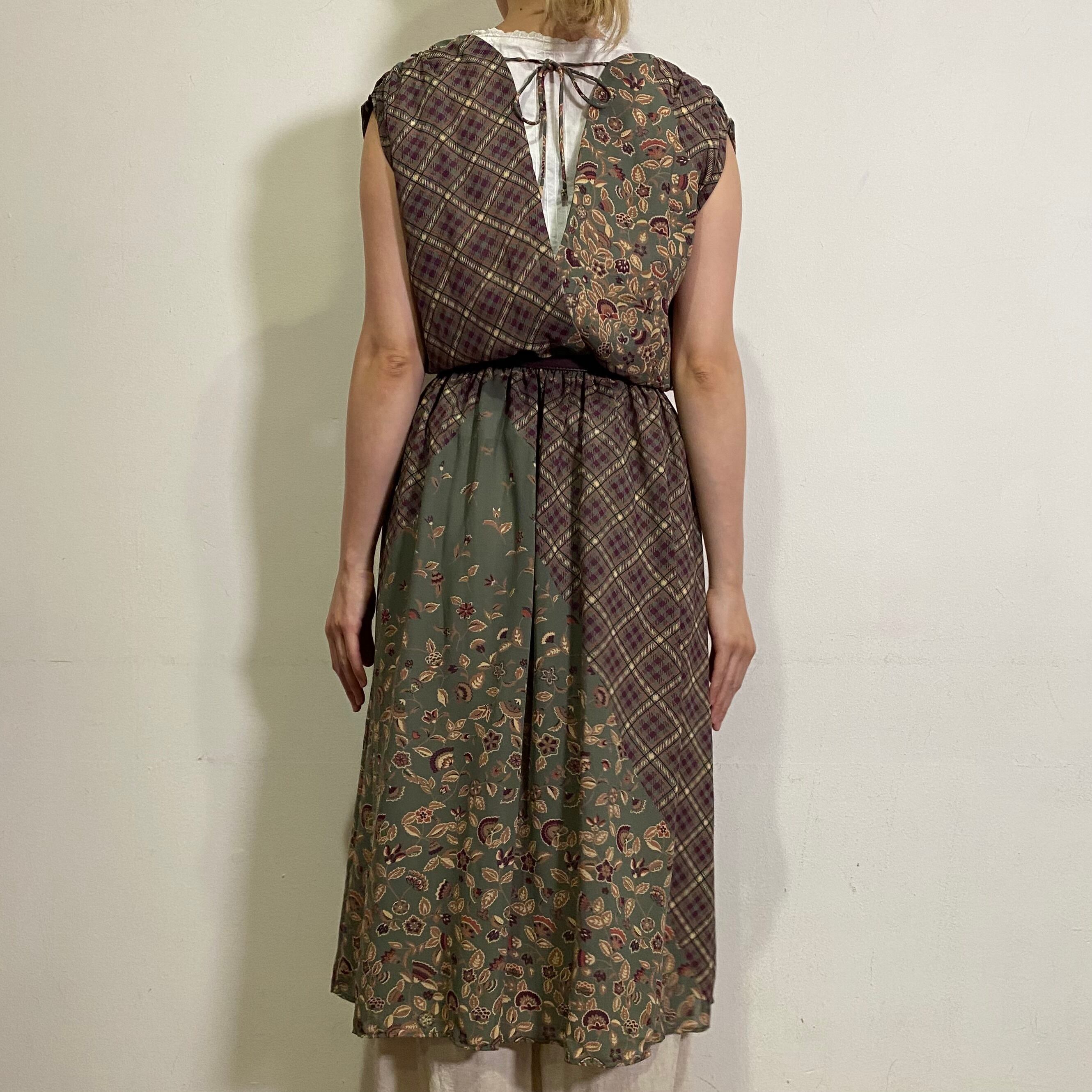 花柄とチェックの組み合わせが可愛い、ノースリーブワンピースです。