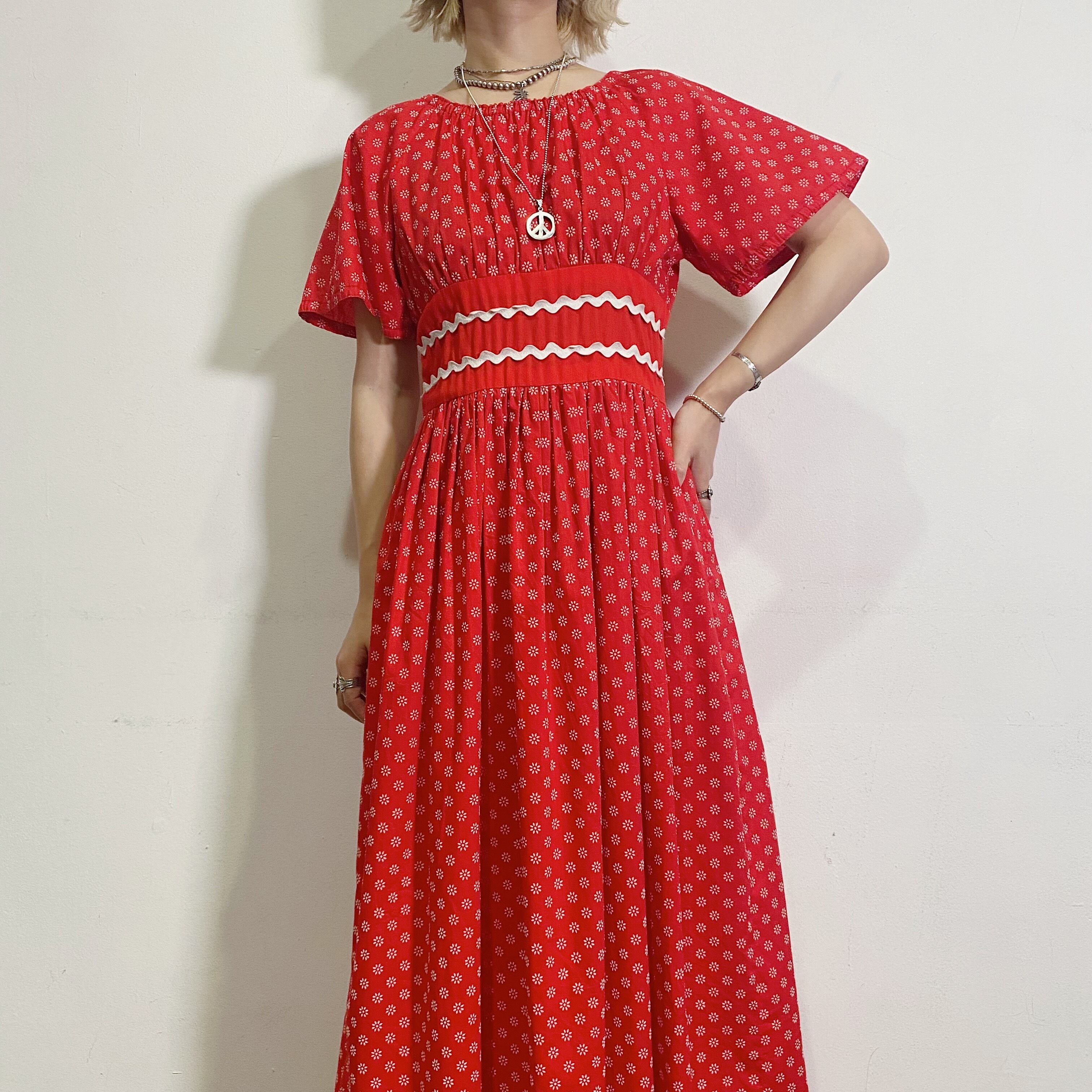 赤白の色合わせに花柄が可愛い、70年代のワンピースです。