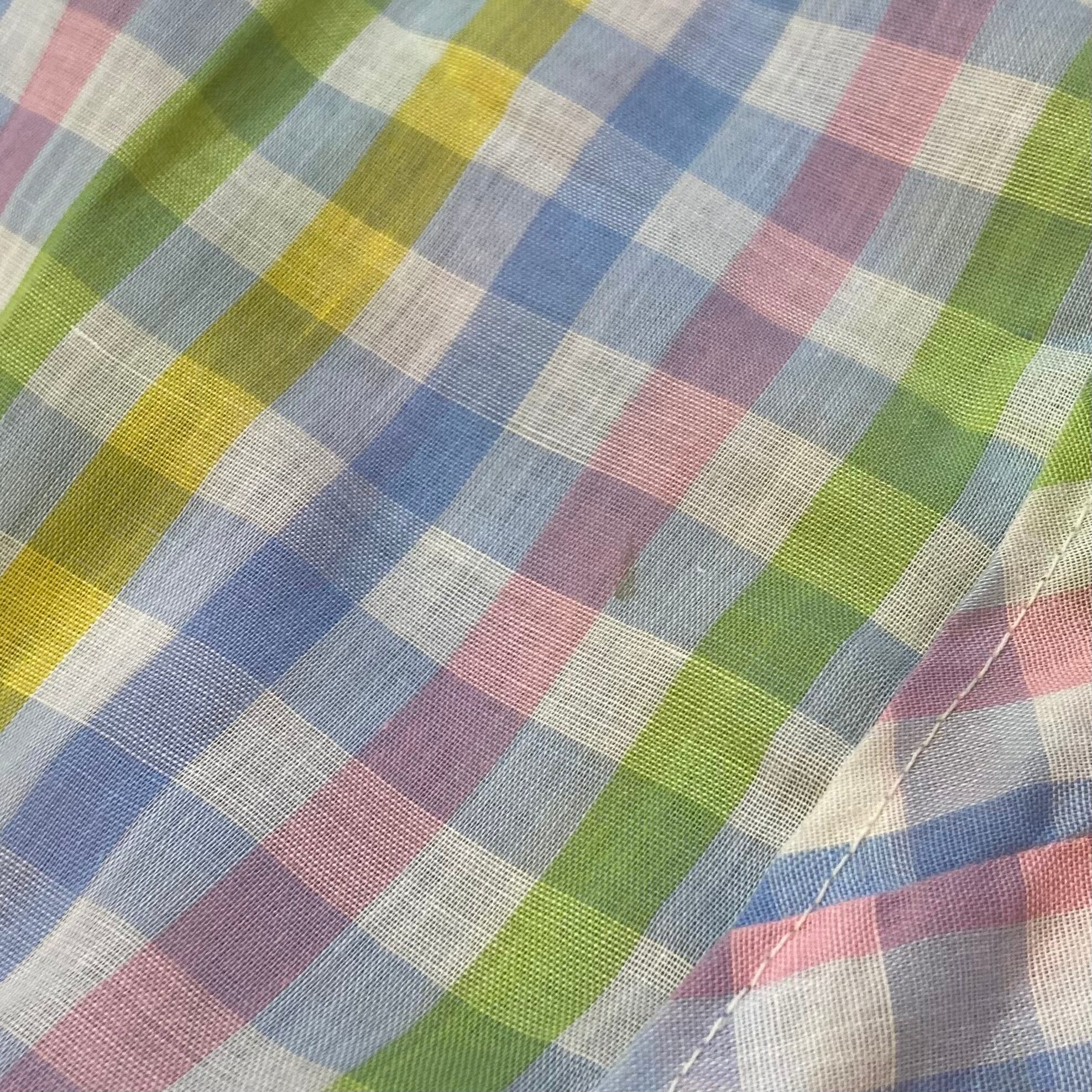 パステルなマルチカラーのチェックに、ポケットの刺繍がとっておきに可愛い前開きワンピースです。