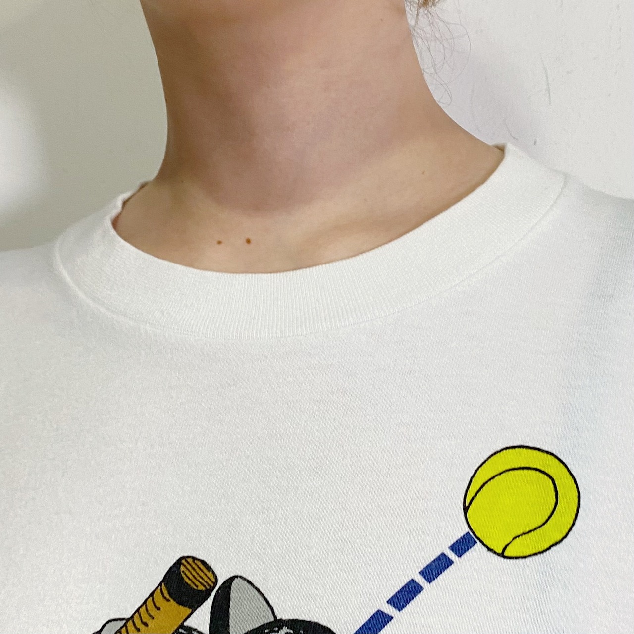 コットン100%のホワイトボディで、大変使い勝手の良い一枚ですよ。