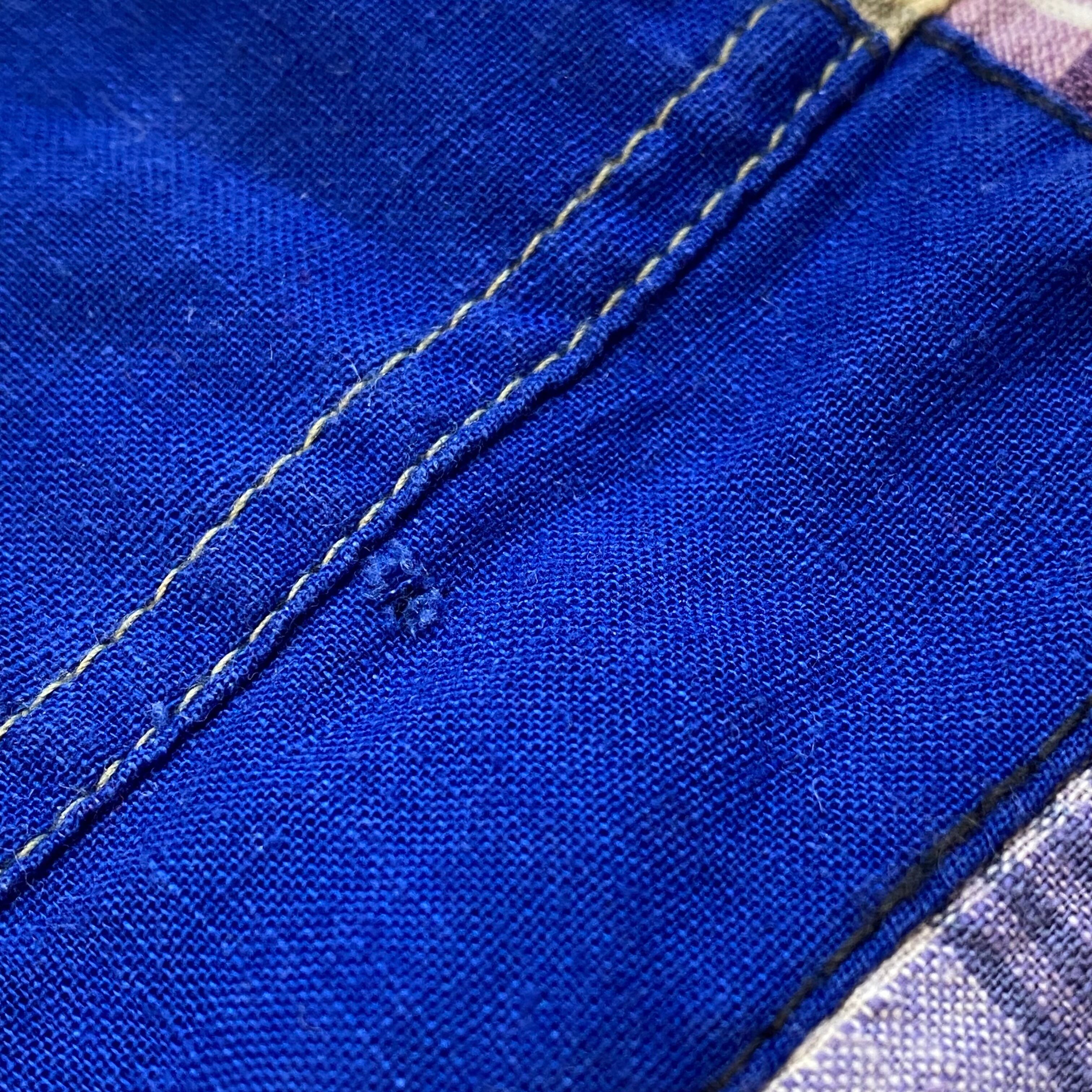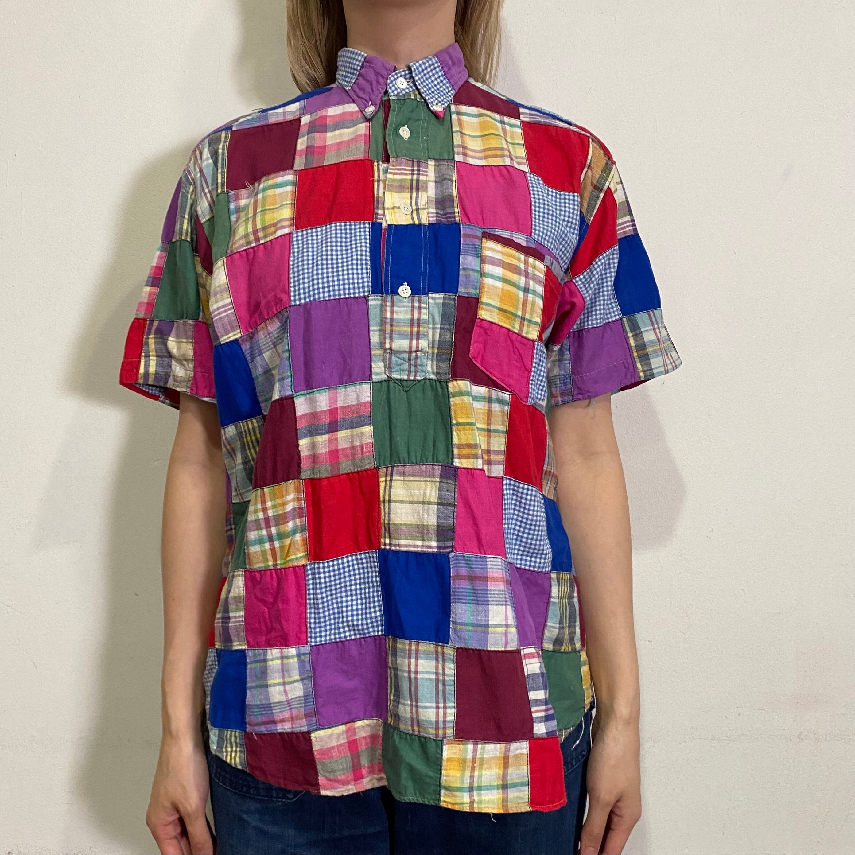 カラフルなリアルパッチワークが可愛い、70年代のプルオーバー半袖シャツです。