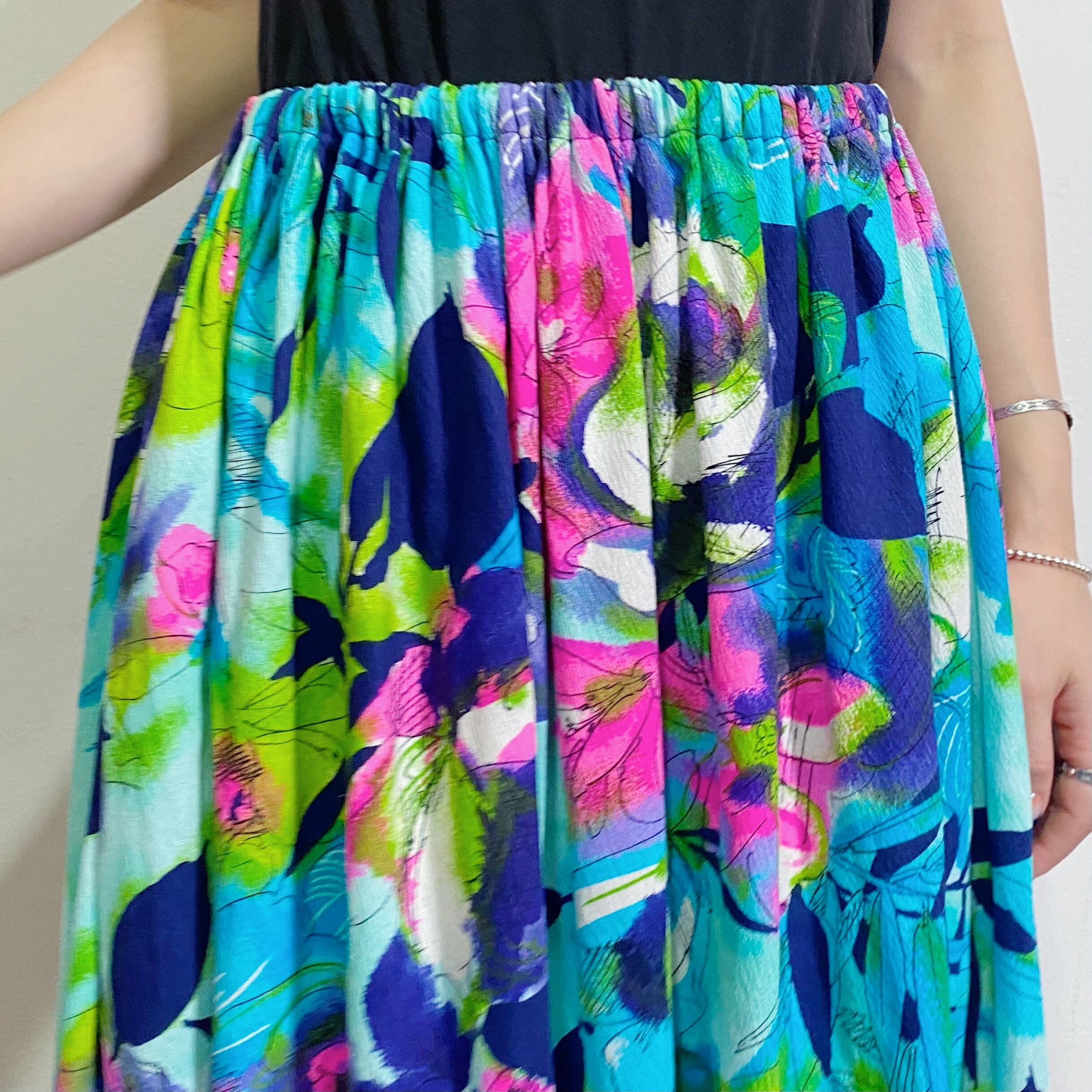 水彩画タッチの草花柄がとても素敵な70年代のロングスカートです。