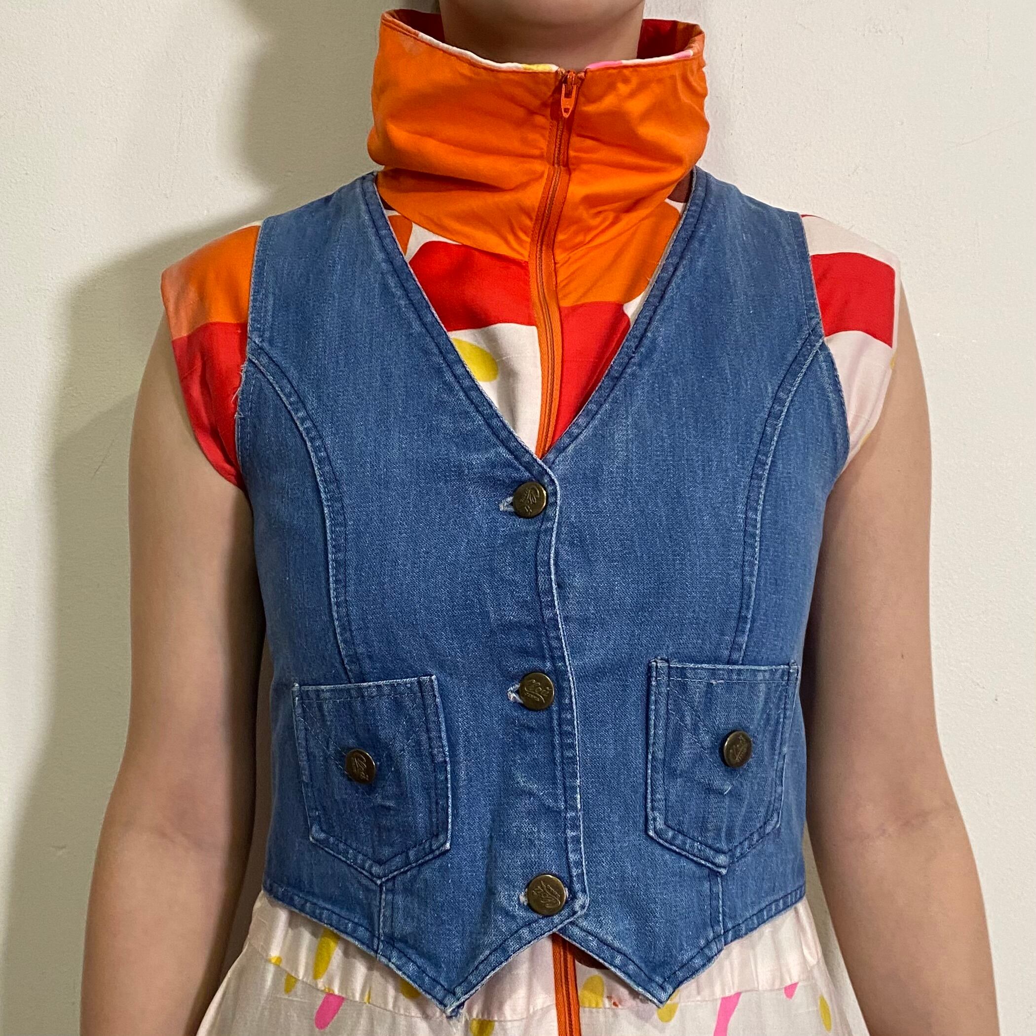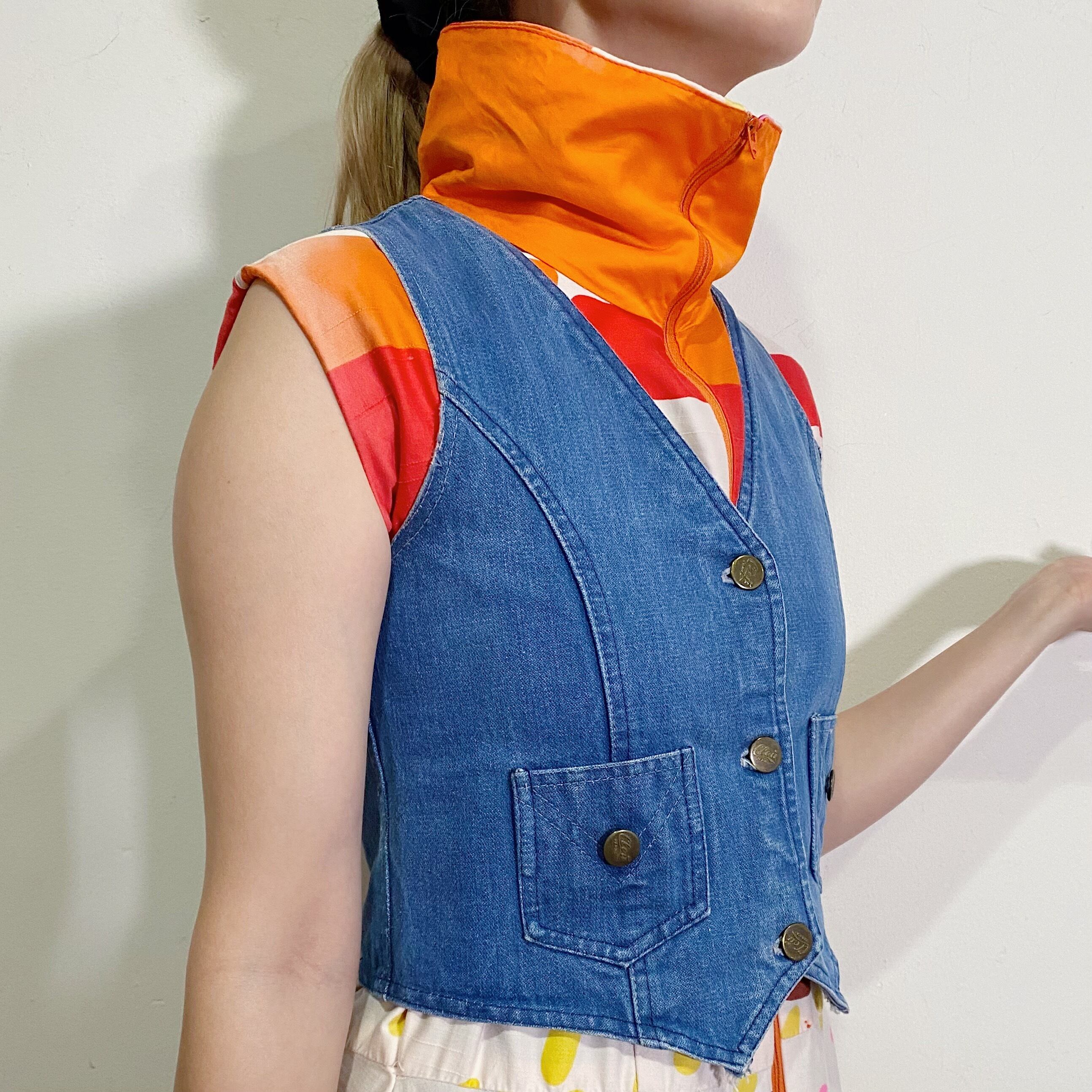 コンパクトなサイズ感が可愛い70年代のデニムベストです。