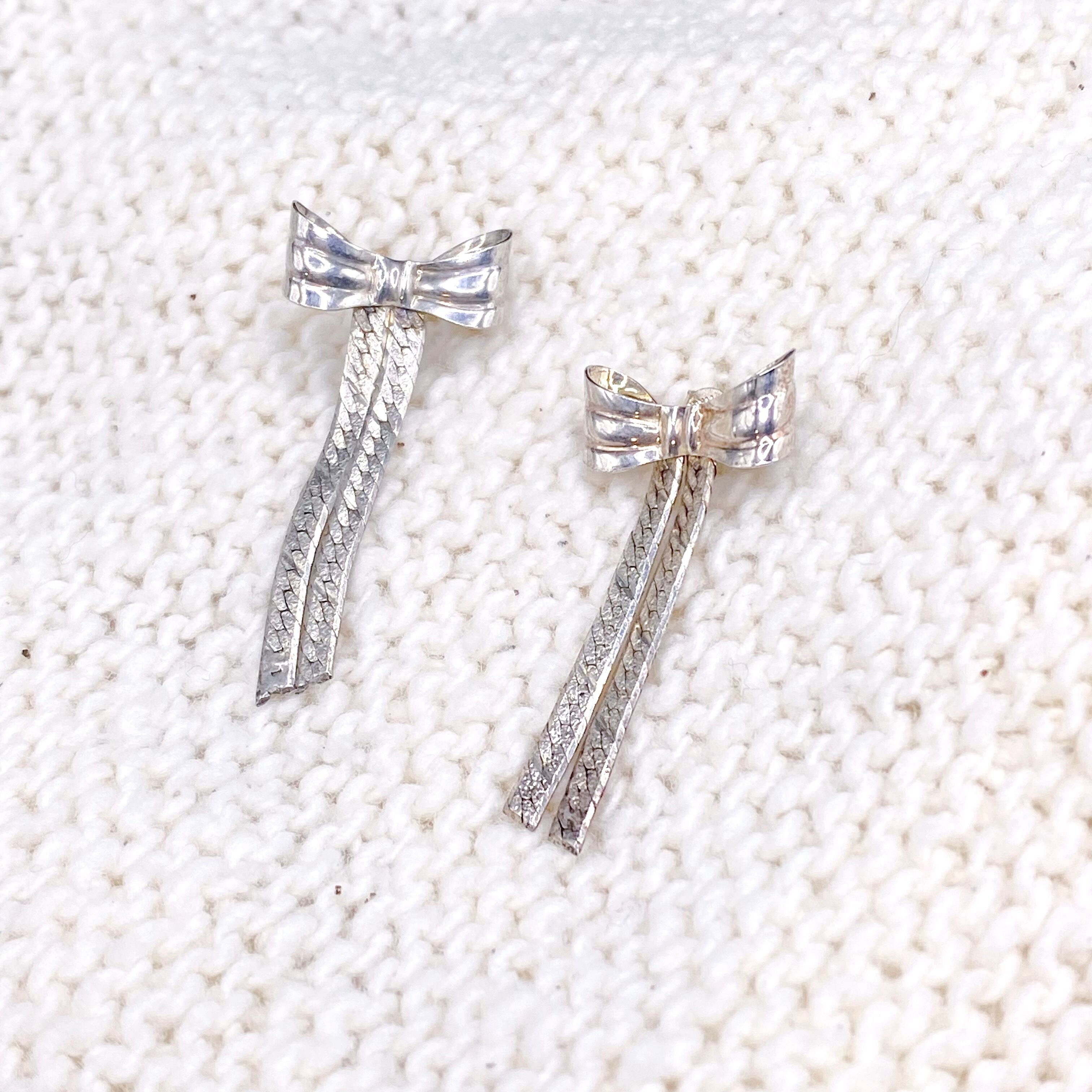 リボンモチーフが可愛い、925シルバーのピアスです。