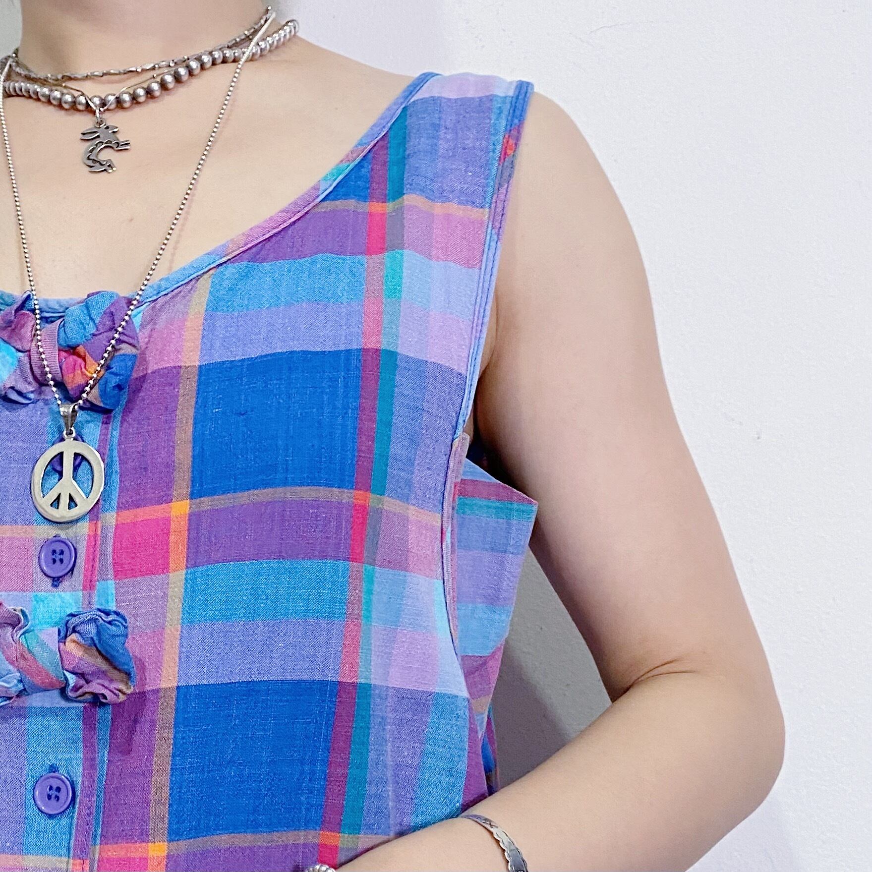 紫や青、ピンクのマドラスチェックに上質なコットン素材が嬉しい一枚。