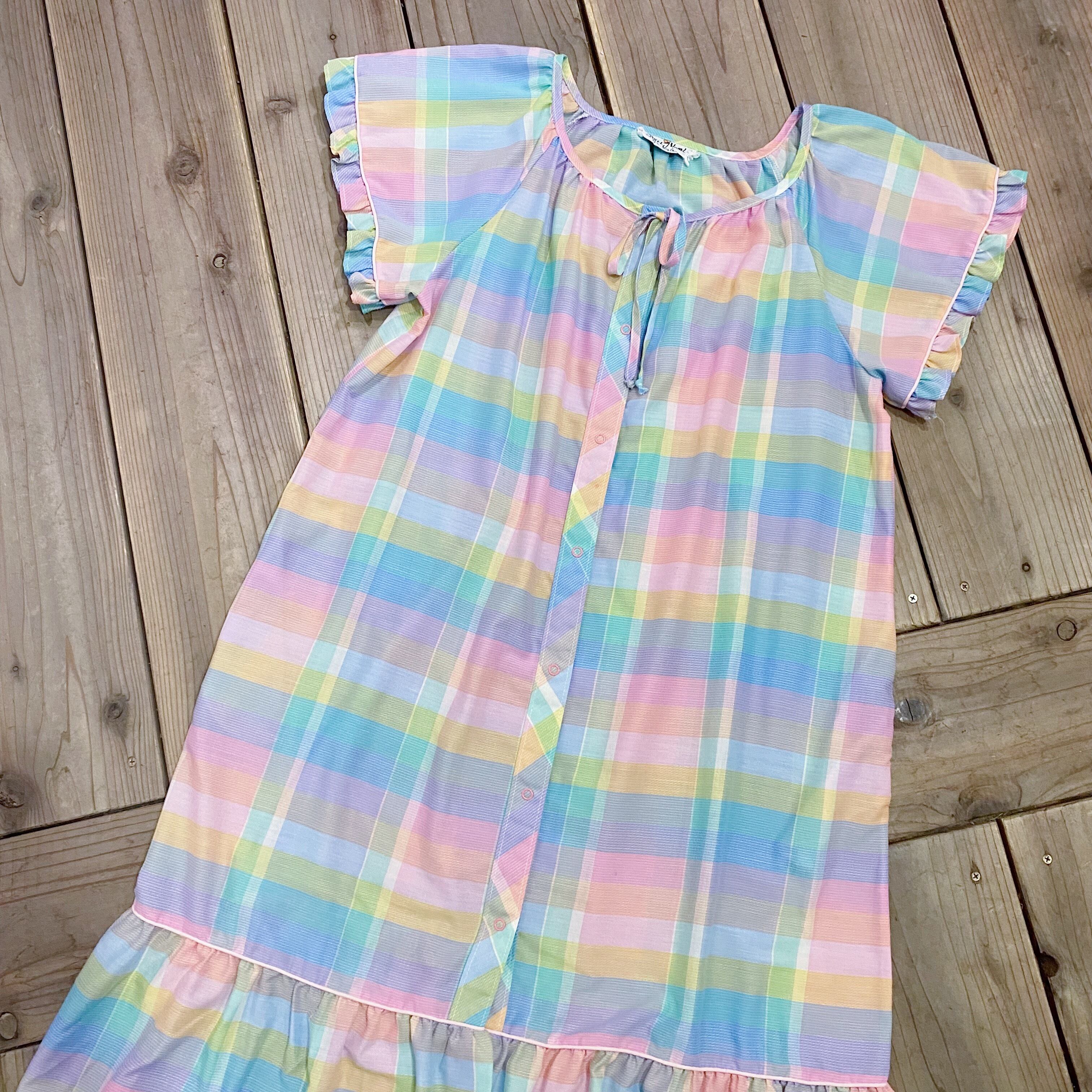 80s pastel plaid dress