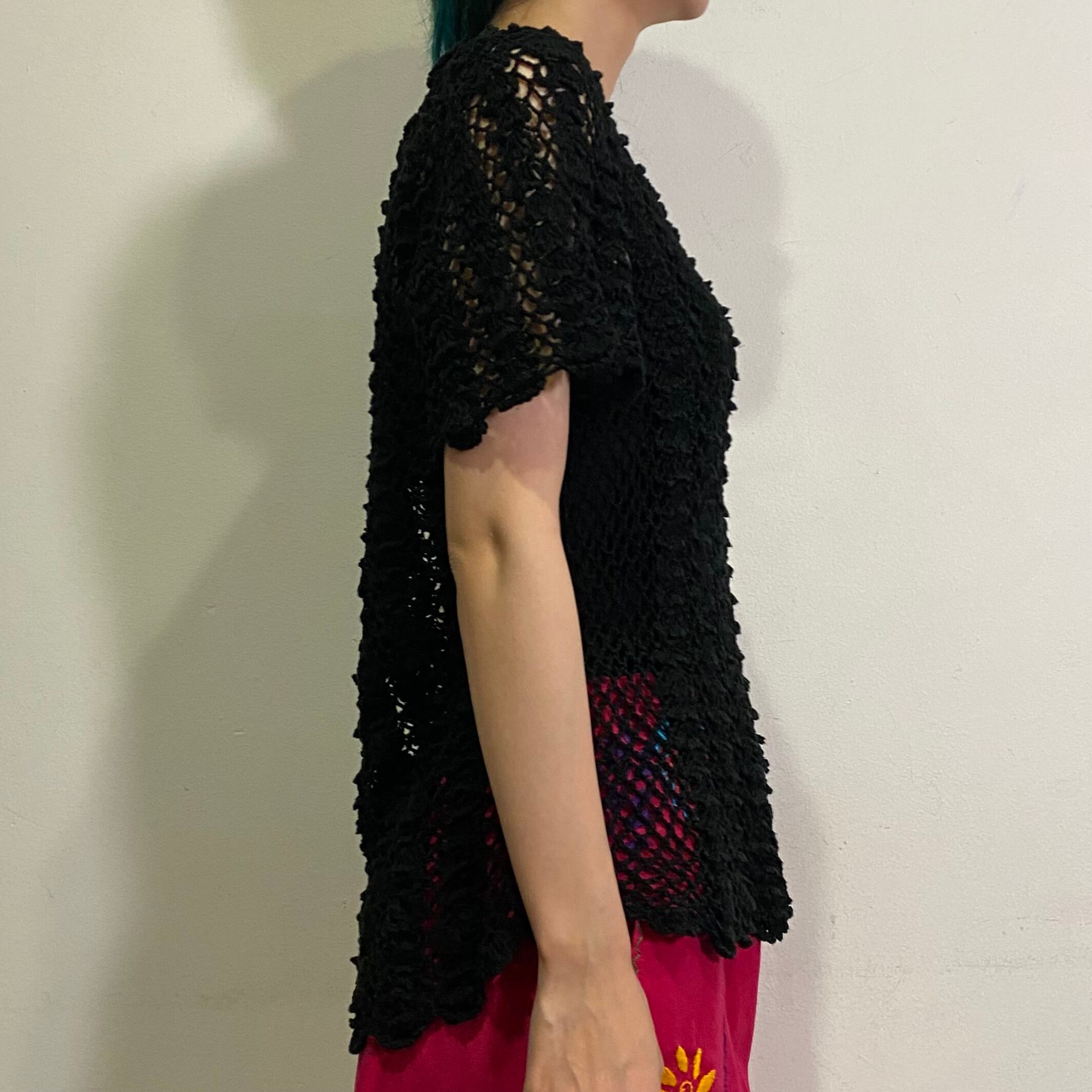 ブラックカラーで大変使い勝手の良い、クロシェトップスです。