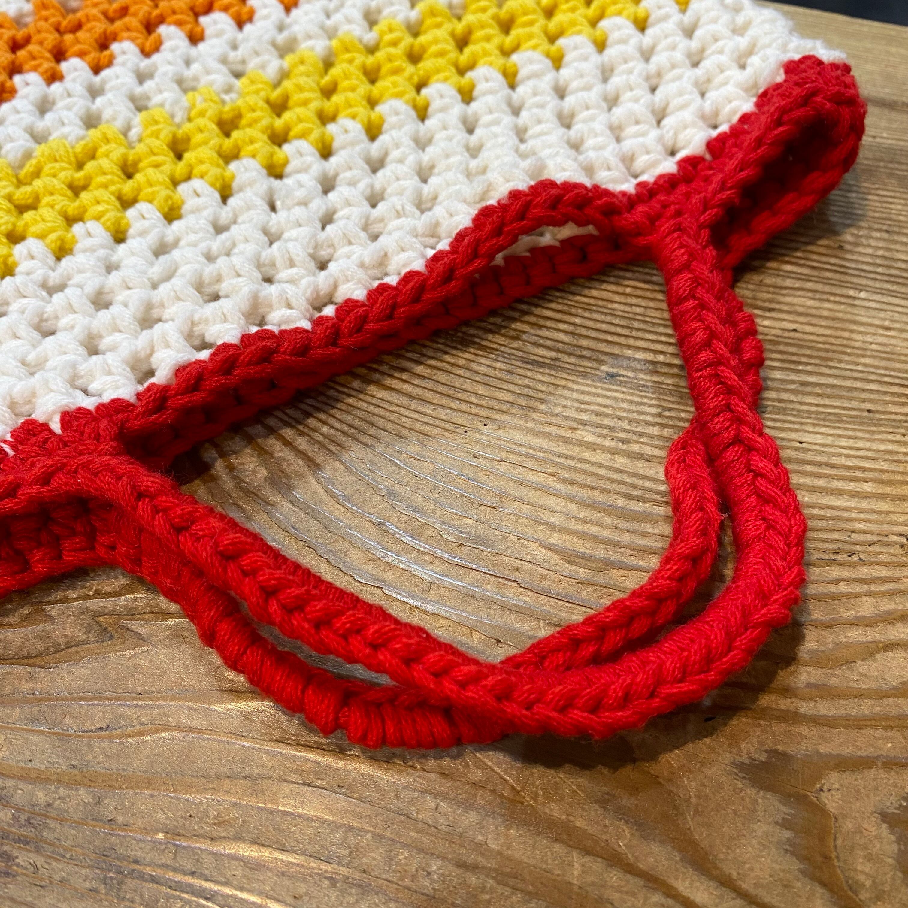 White and red crochet mini bag