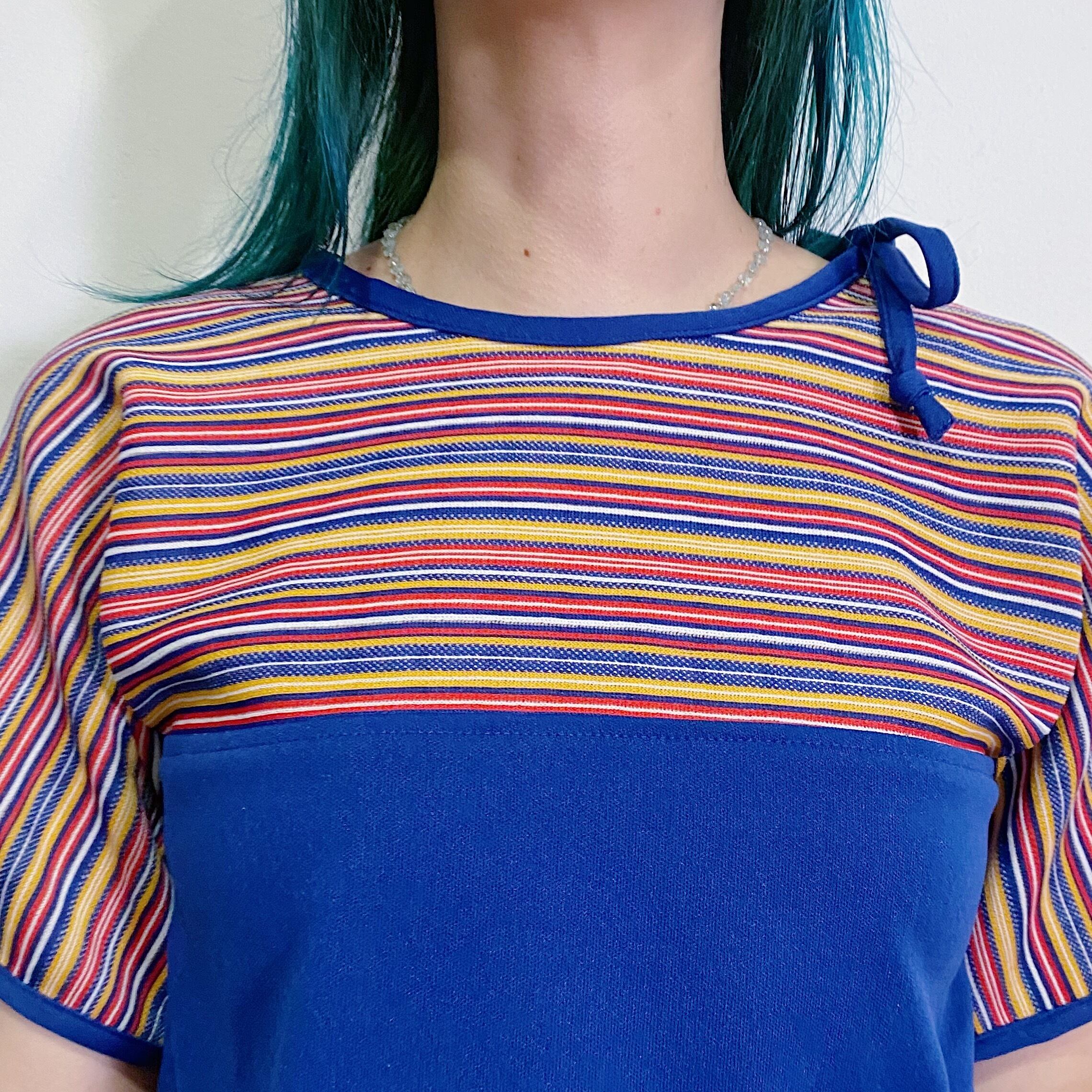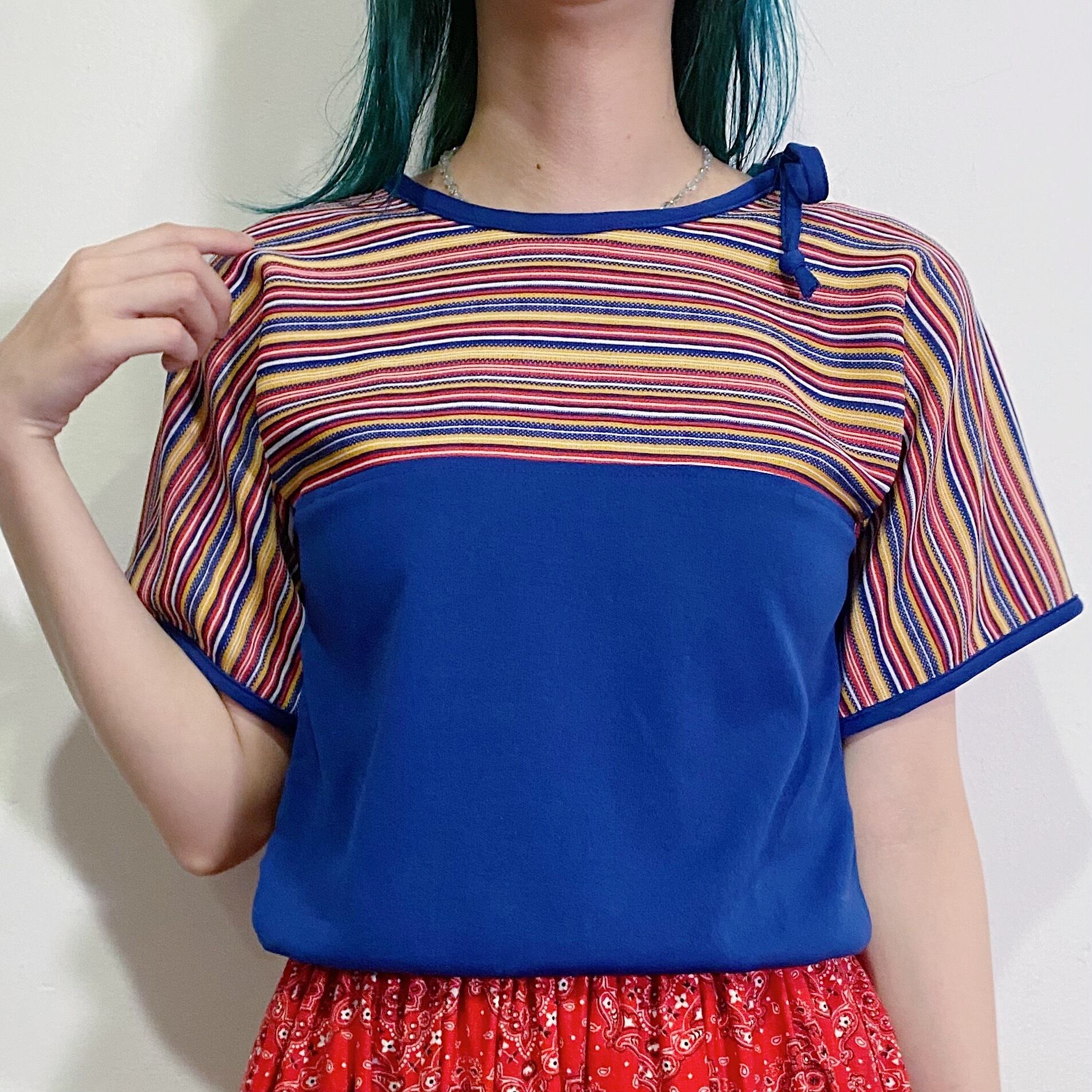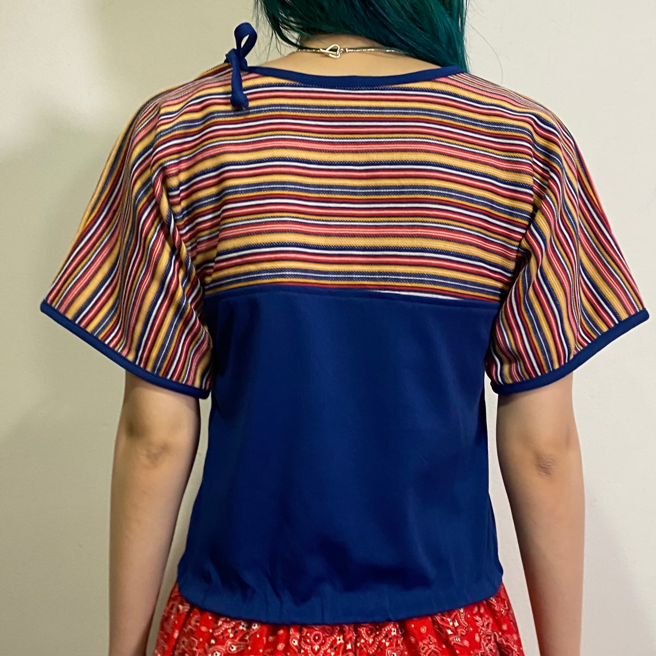 マルチボーダーとネイビーのバイカラーが可愛い、70年代のトップスです。
