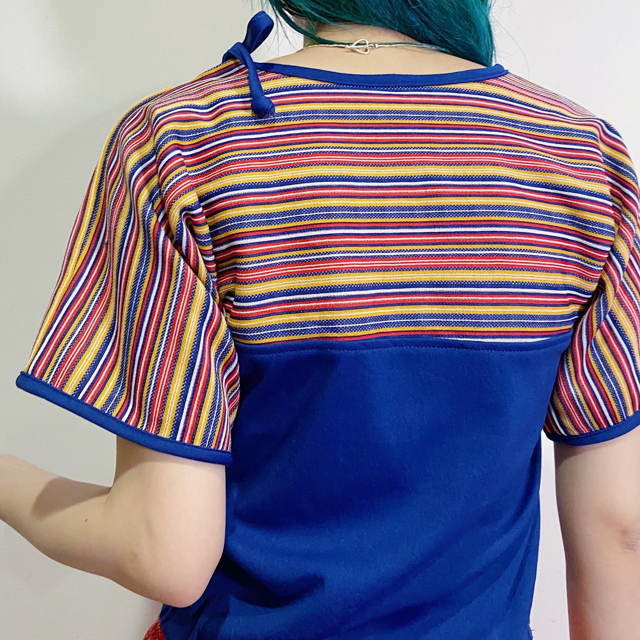 70s navy stripe ribbon top
