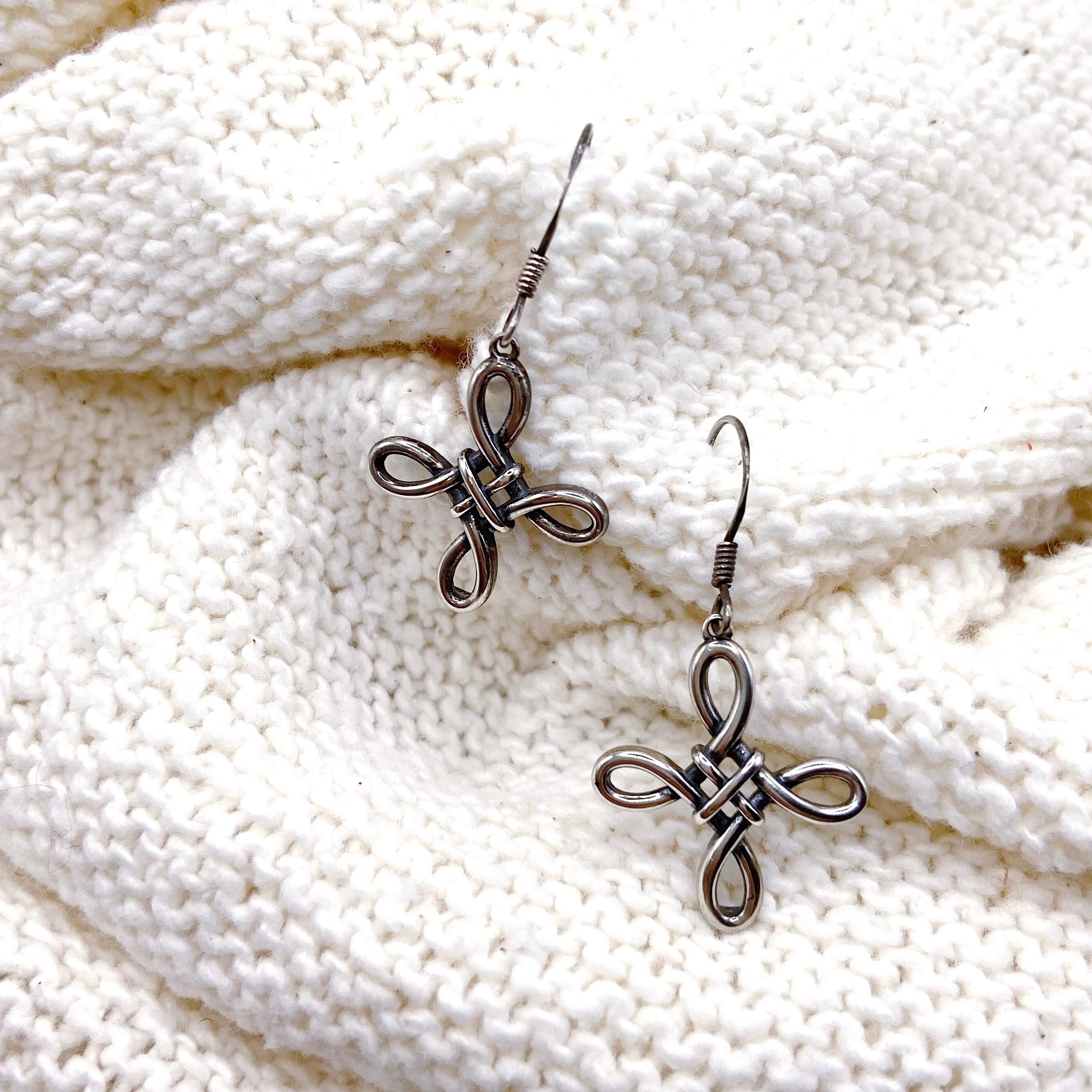 お花にもクロスモチーフにも見えて可愛い、925シルバーのピアスです。