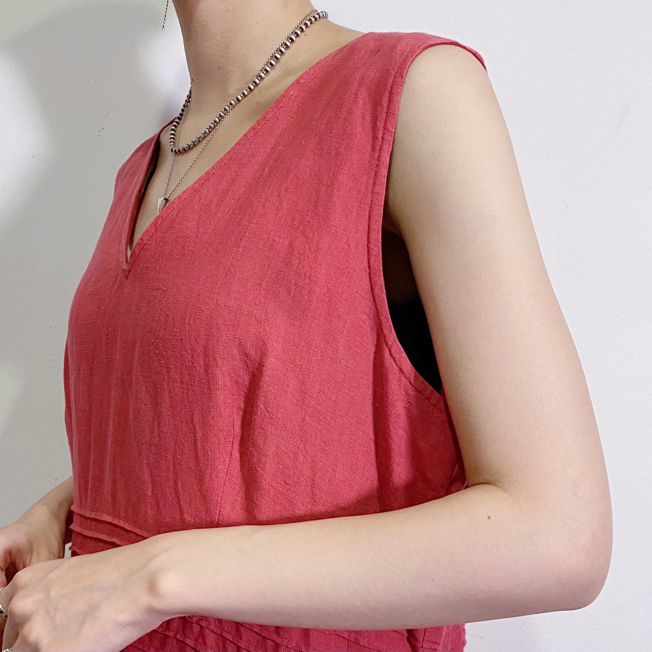 red linen sleeveless dress