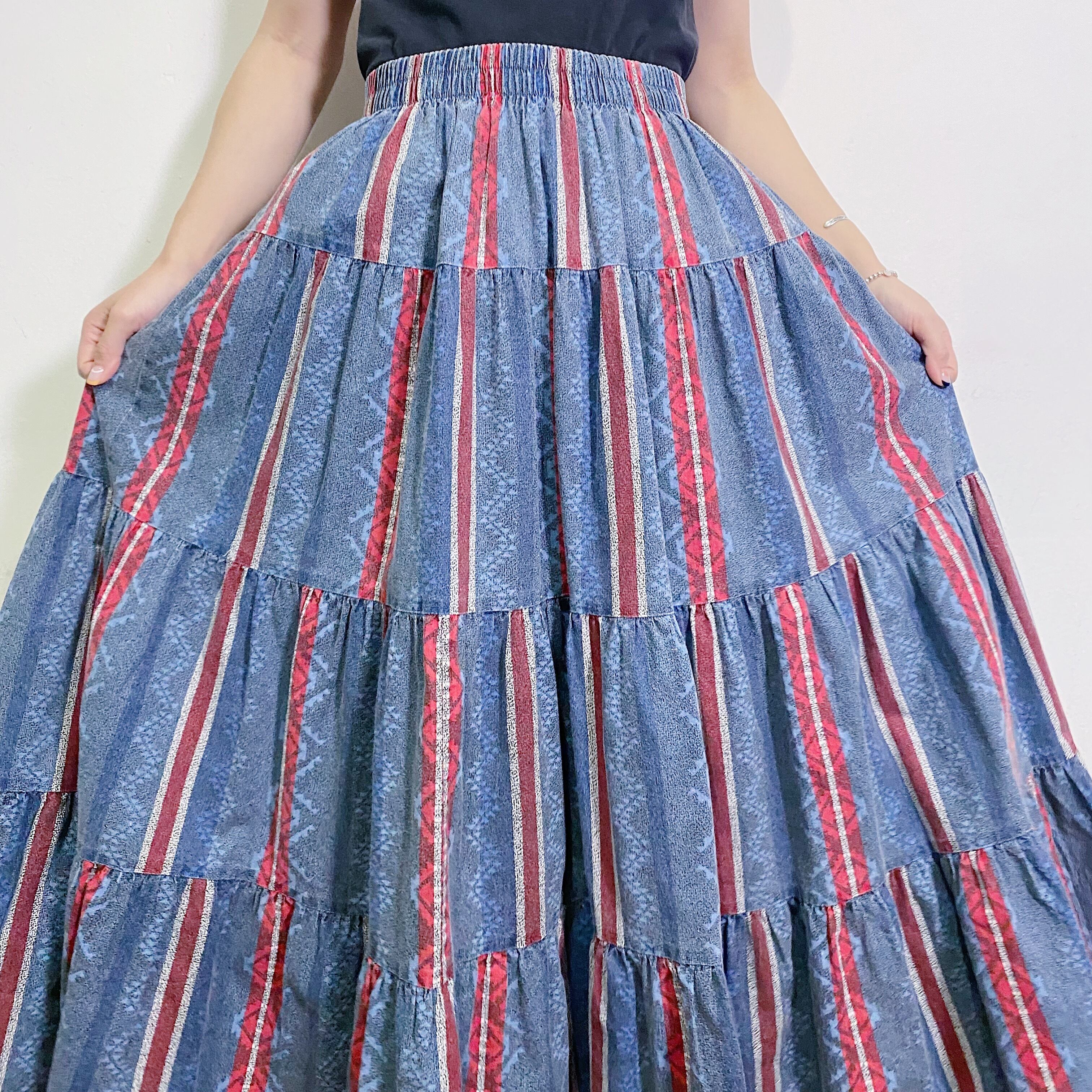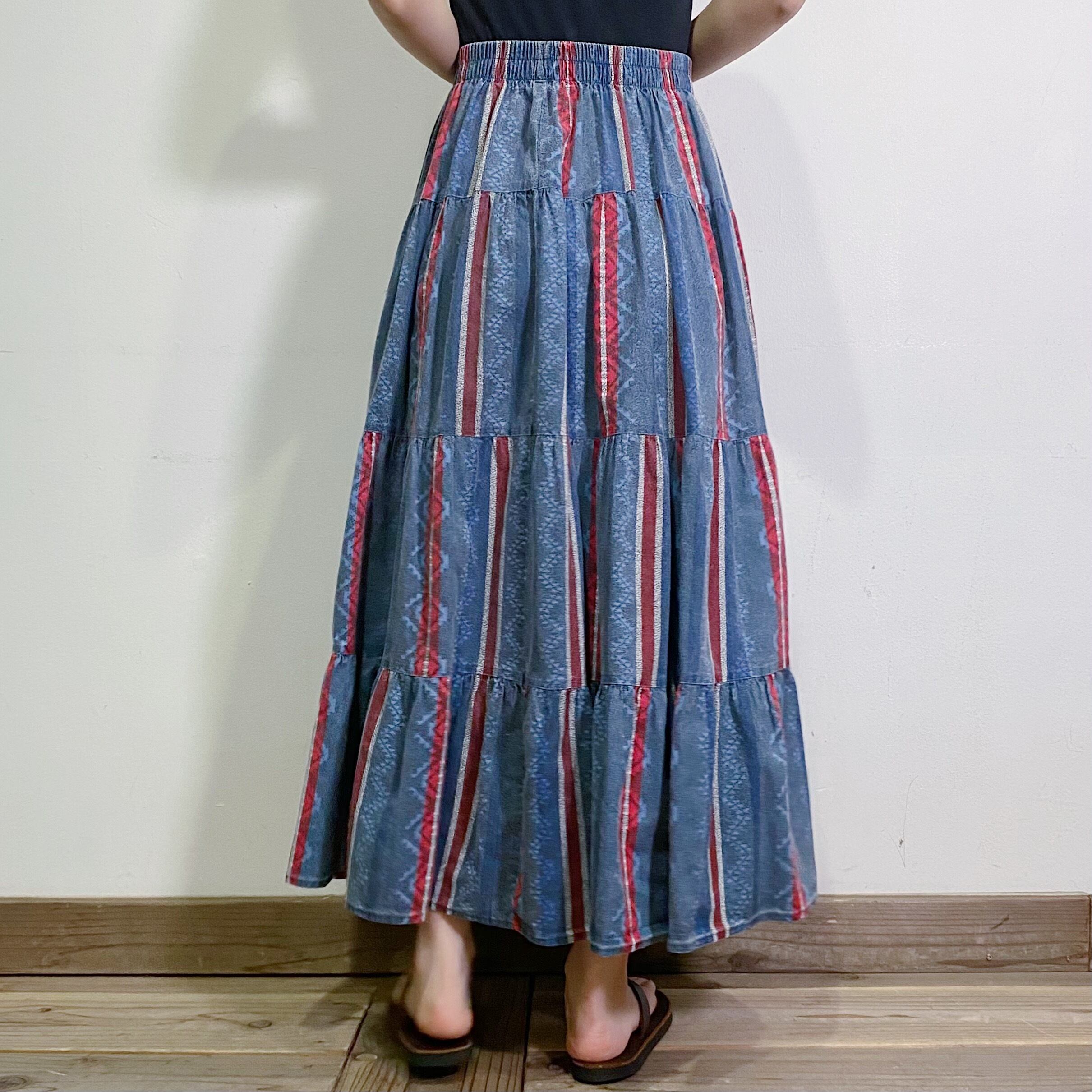 ネイビーとレッドの組み合わせが可愛い、ネイティブ柄のスカートです。