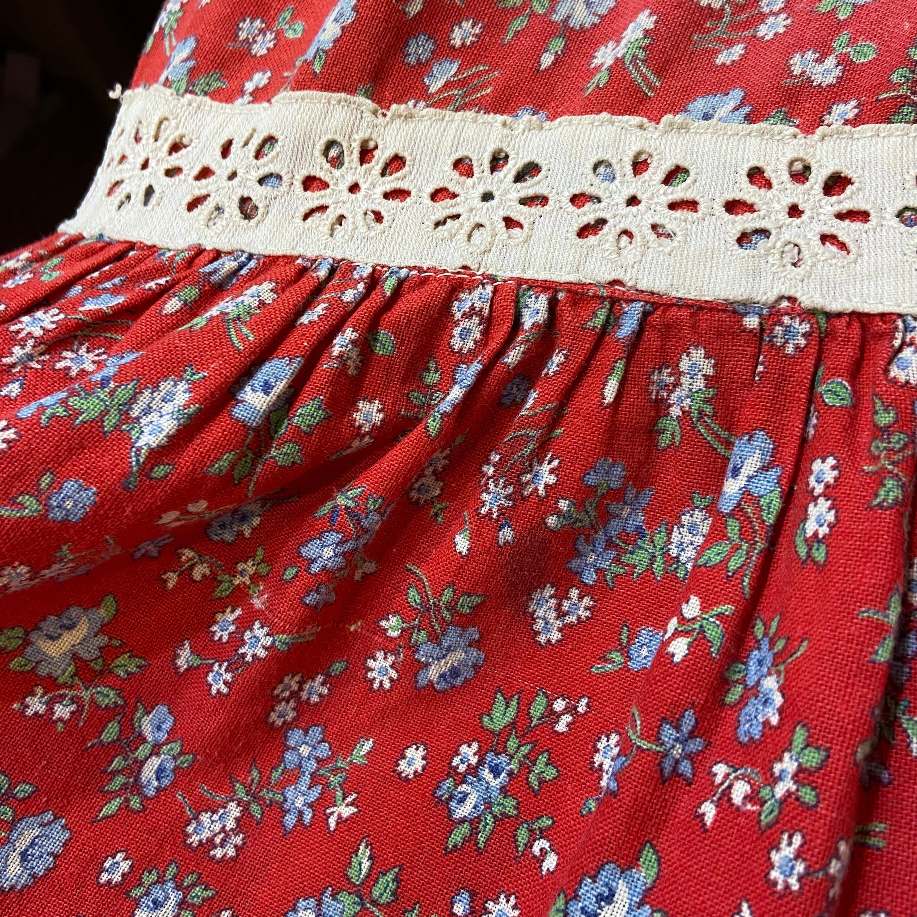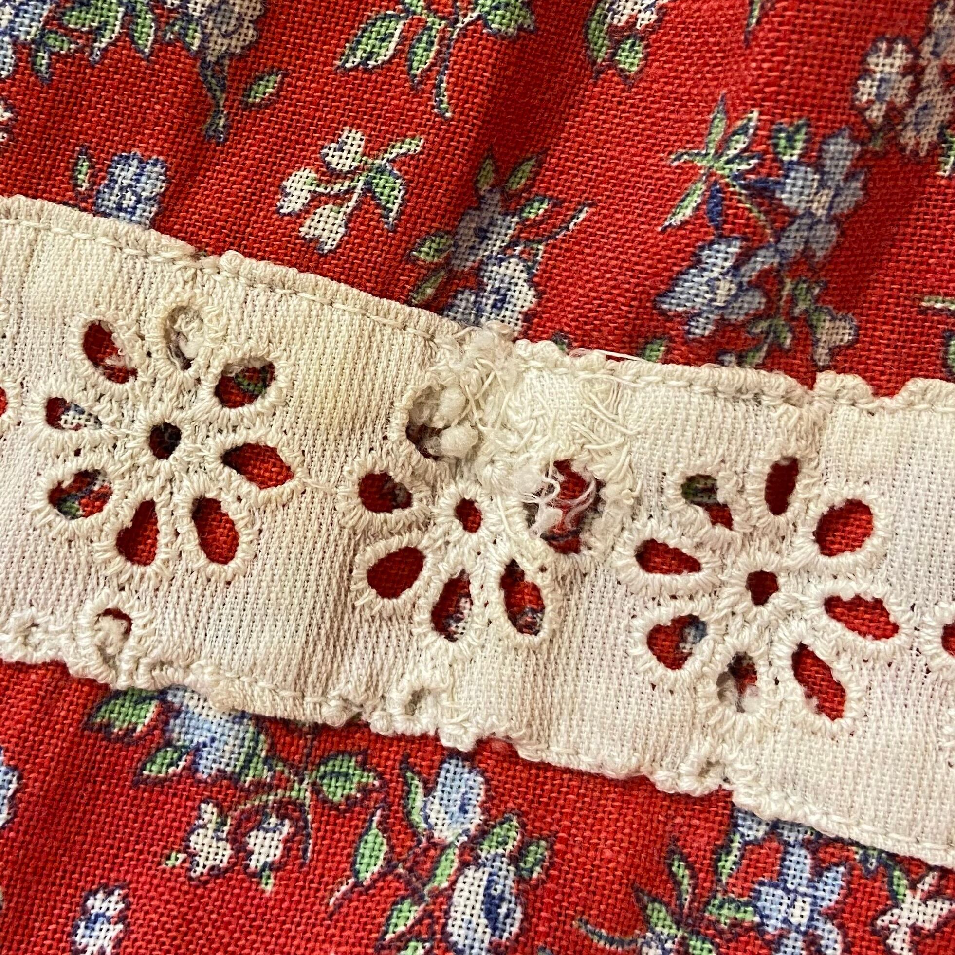 肩の後ろとウエストにパッチ・裾のレース・ボタンホールにお直しの跡が見受けられます。