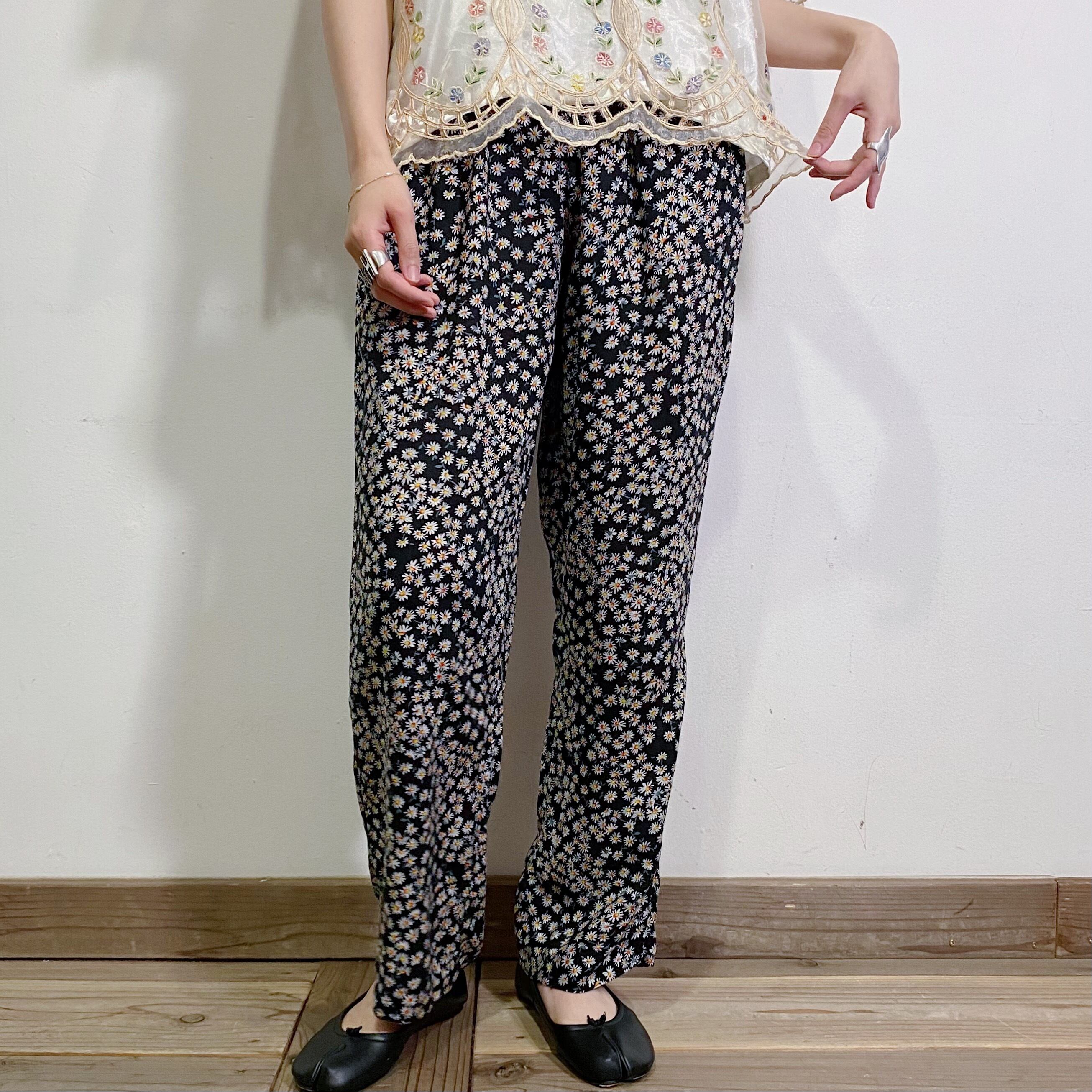 びっしりとプリントされたデイジーが可愛い、イージーパンツです。