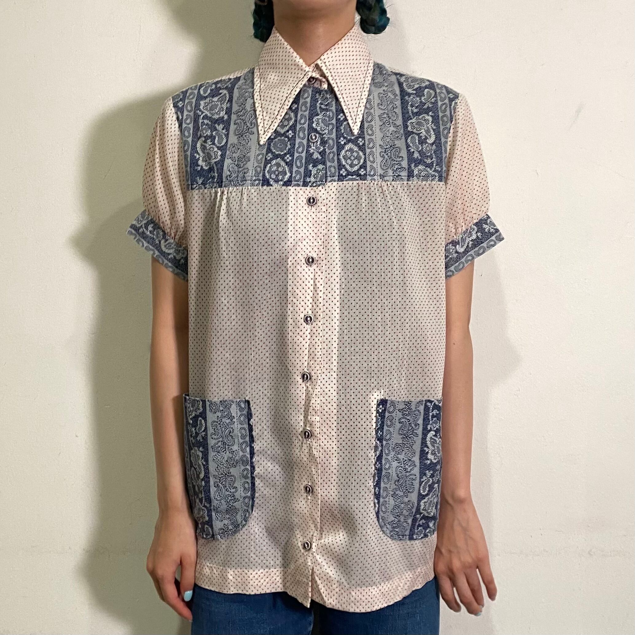白赤ピンドットが可愛い、70年代の半袖シャツです。
