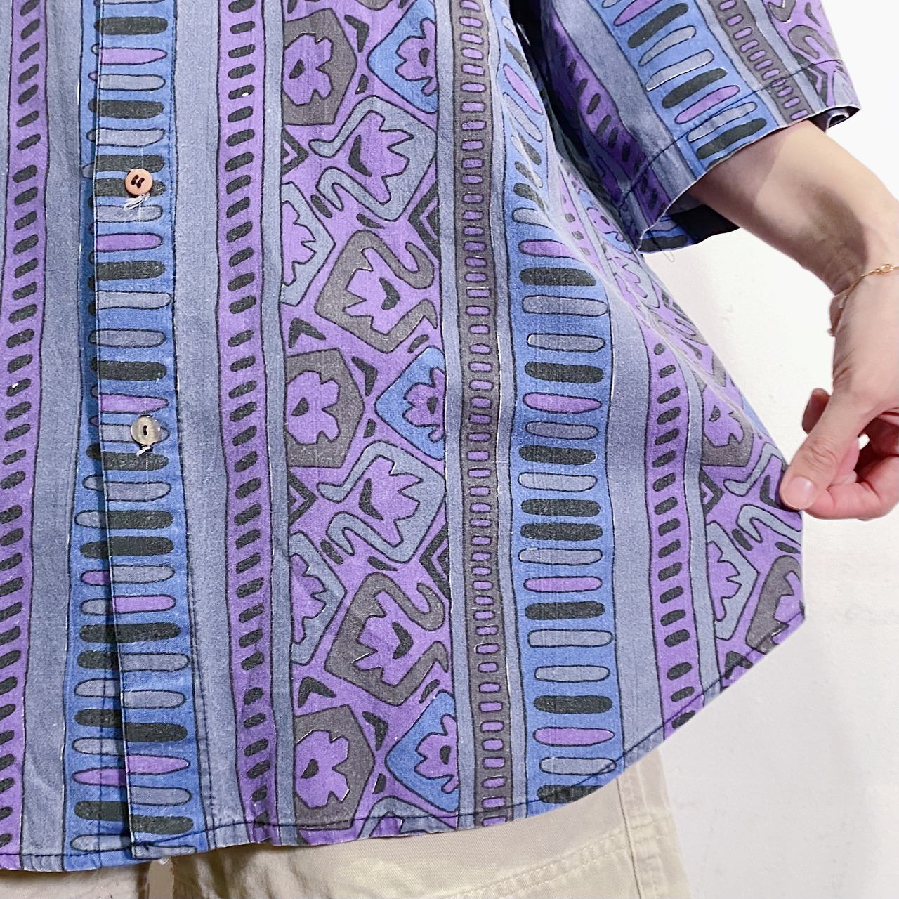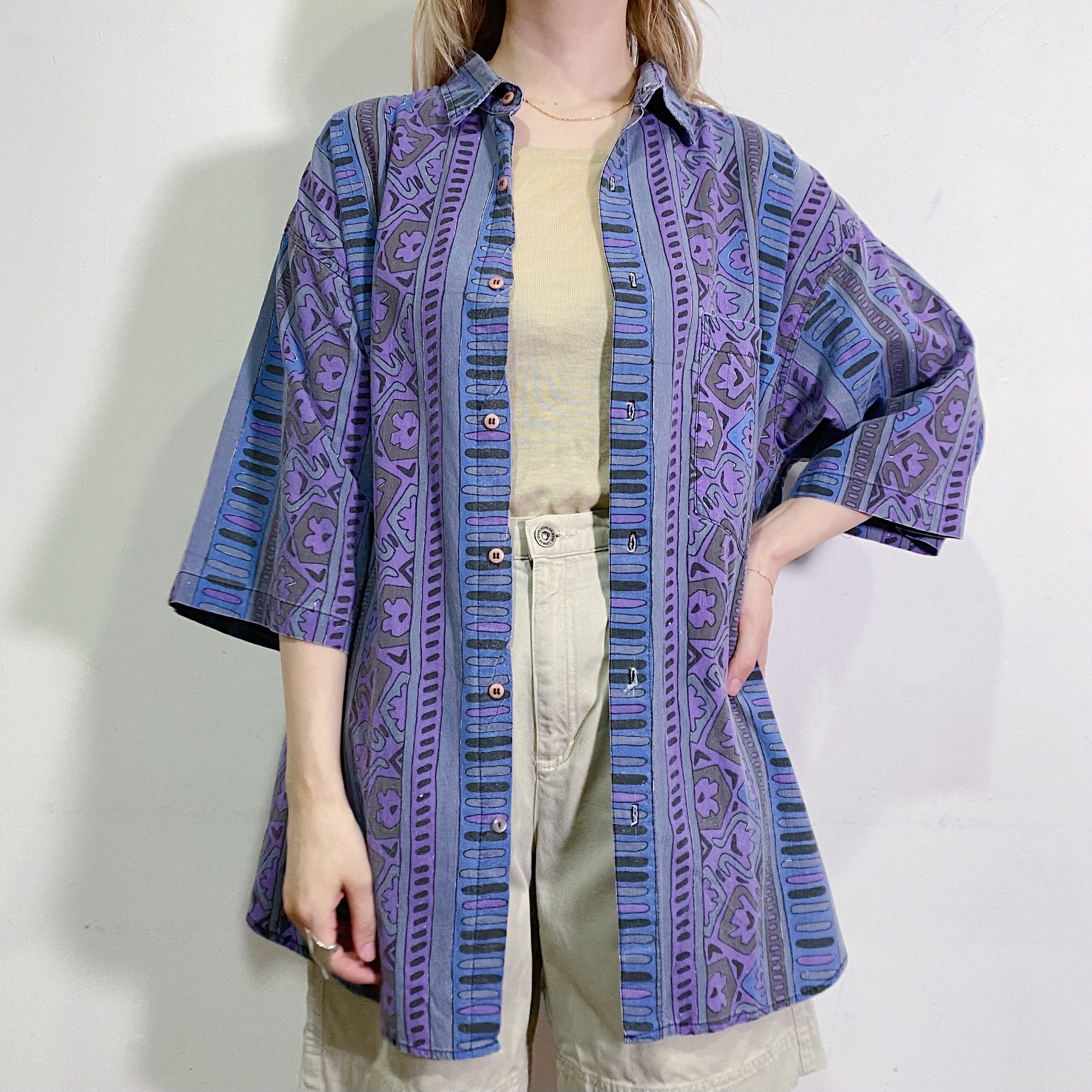 古着らしい不思議な柄が可愛く、コットン地でデイリーに着こなしやすいですよ。