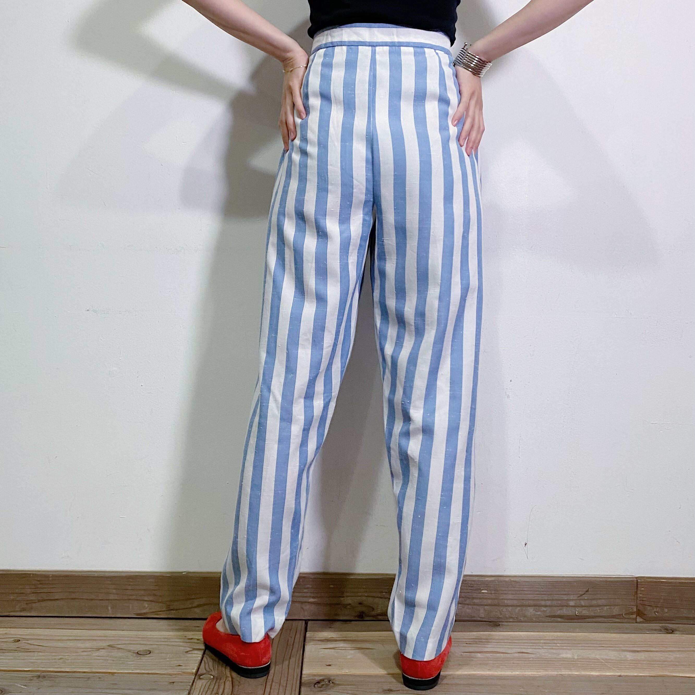 サックスブルーとホワイトのストライプが可愛い、80年代のパンツです。
