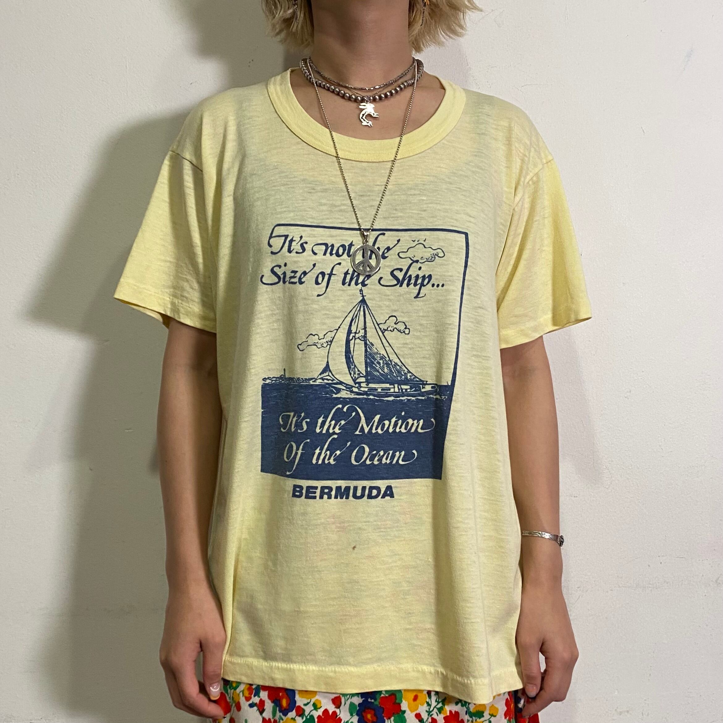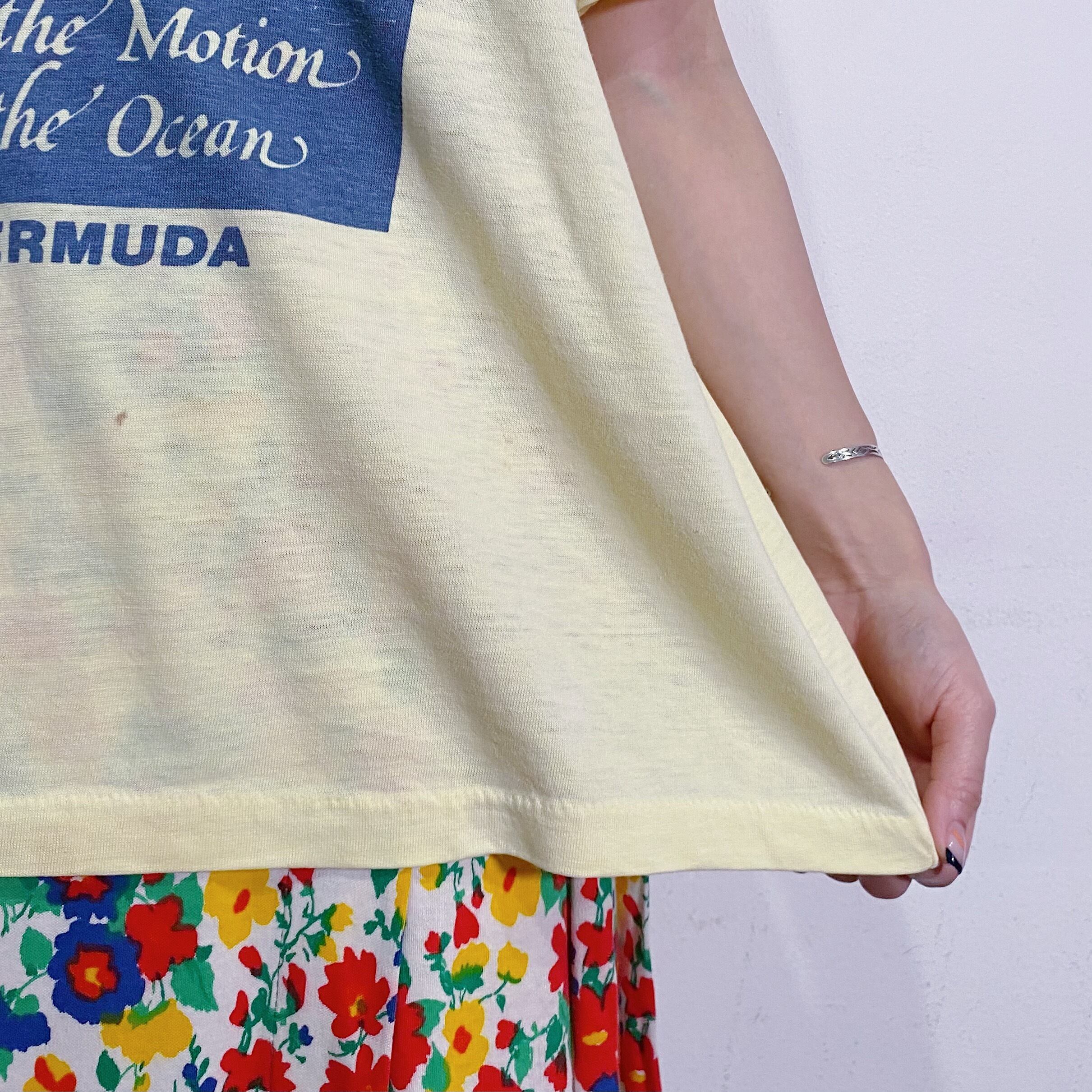 淡いイエローとブルーの色合わせが可愛い、70年代のTシャツです。