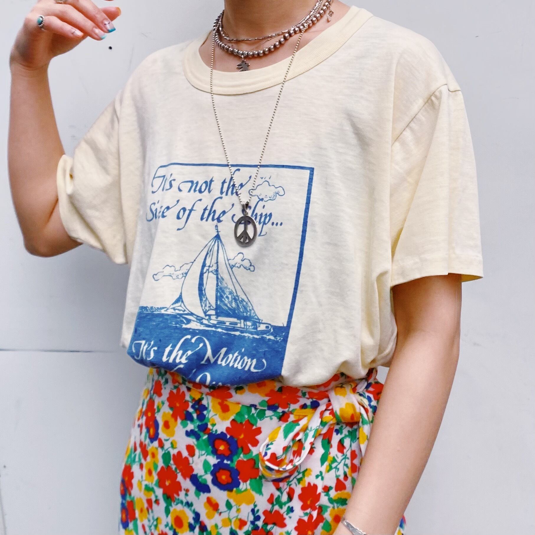 ヨットのプリントが可愛く、薄手の柔らかな素材でデイリーに着こなしやすいですよ。