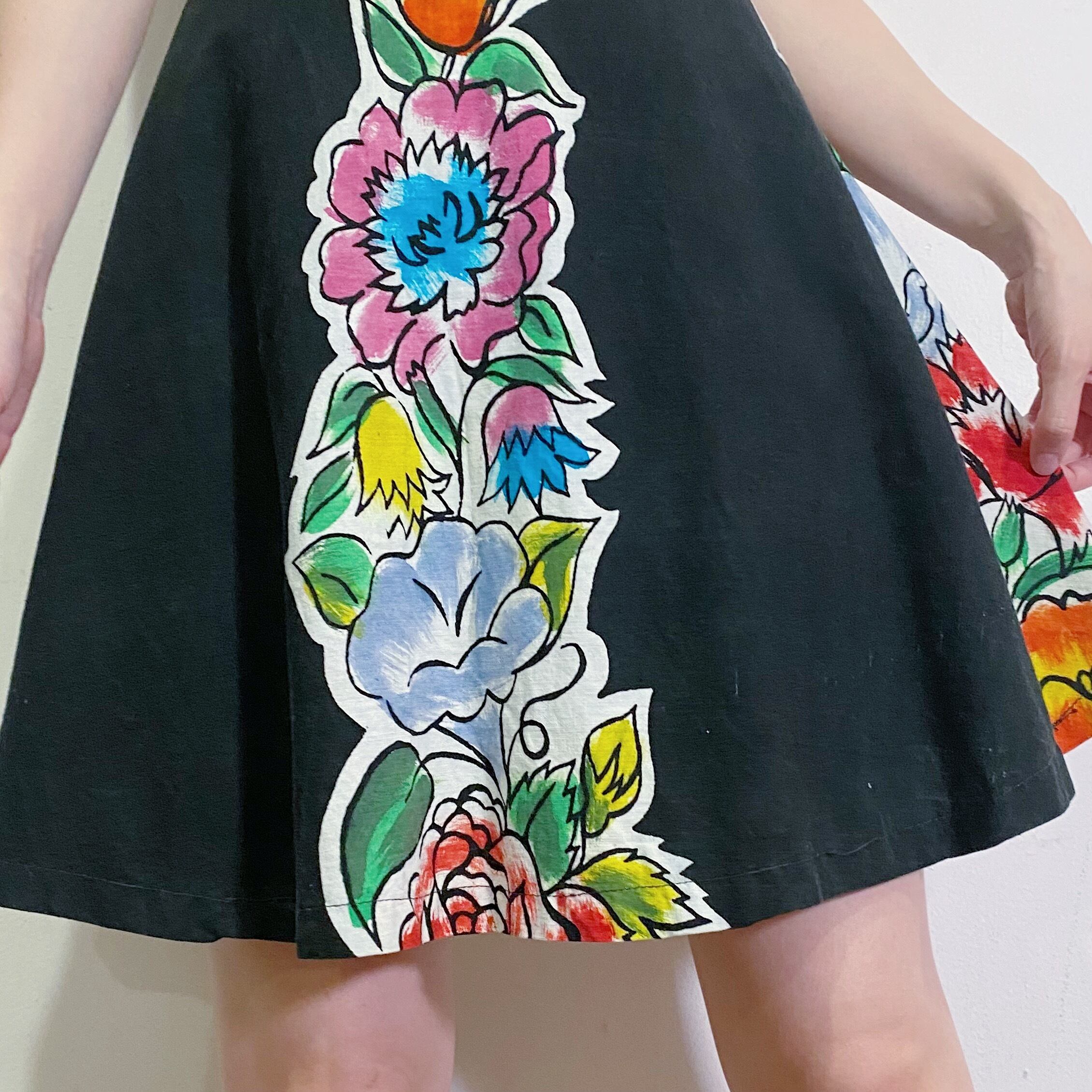 ブラックベースにカラフルなお花が映える、50年代のメキシカンスカートです。