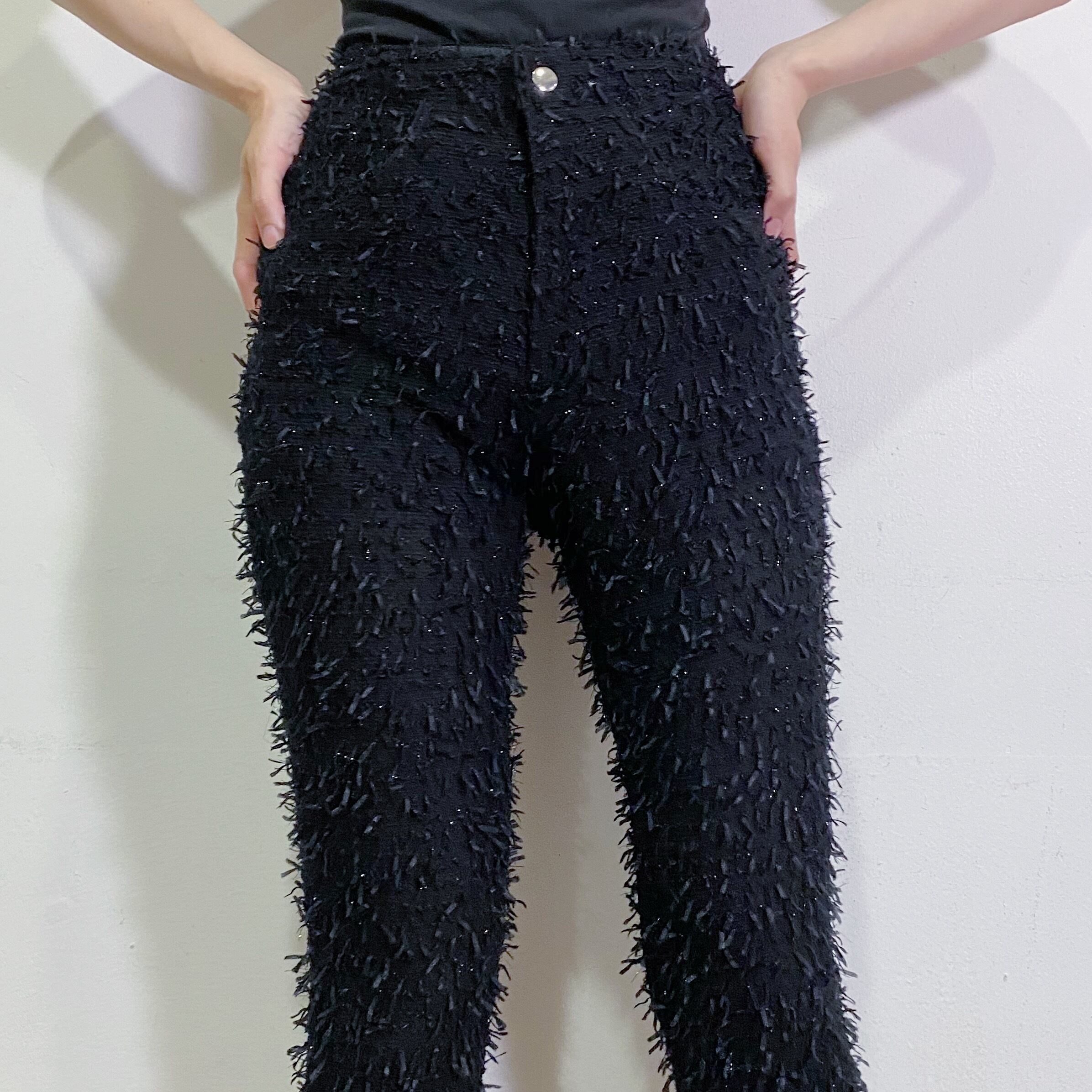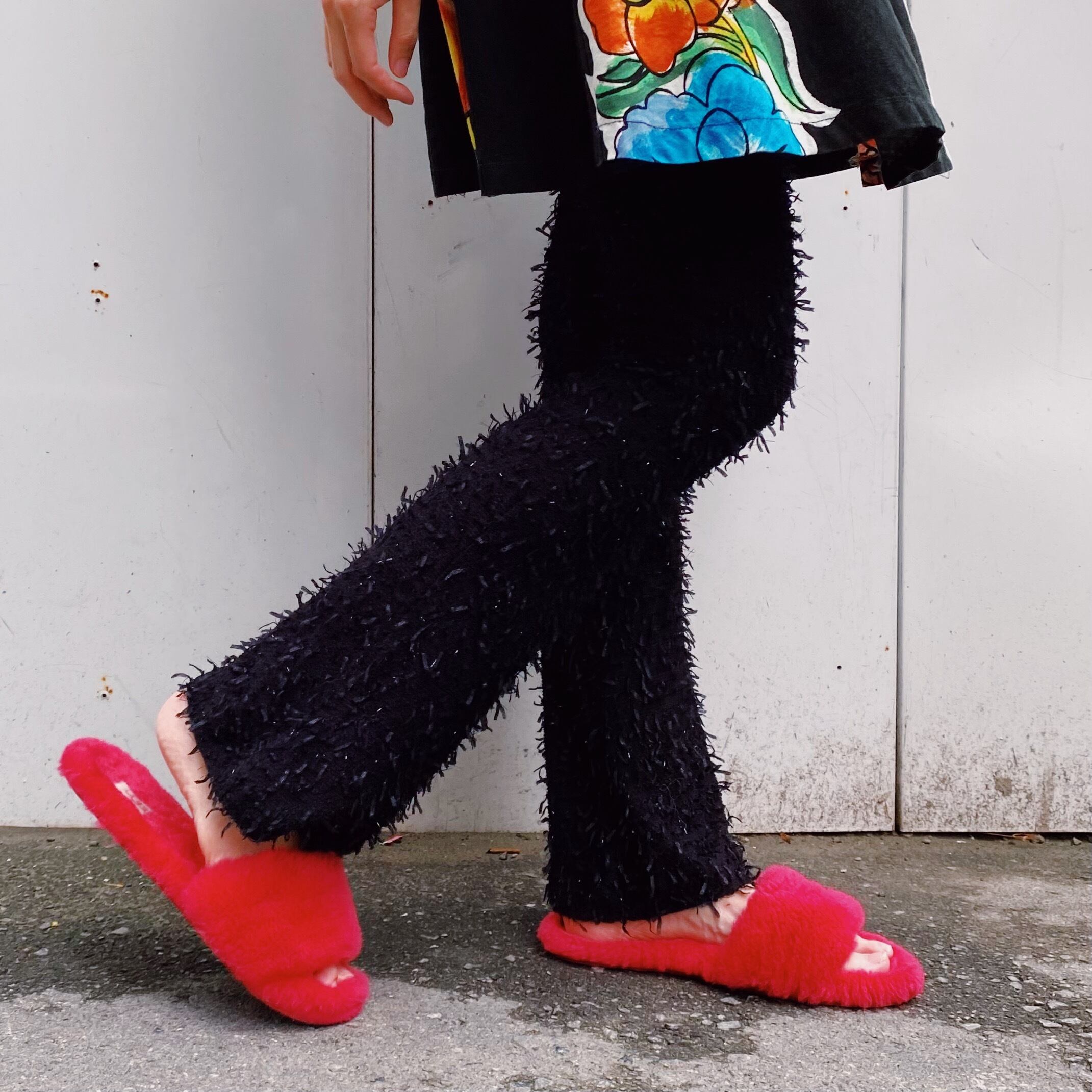 シャギーの中には光沢感のある糸が混じっており、さりげなくキラッとするのがキュート。