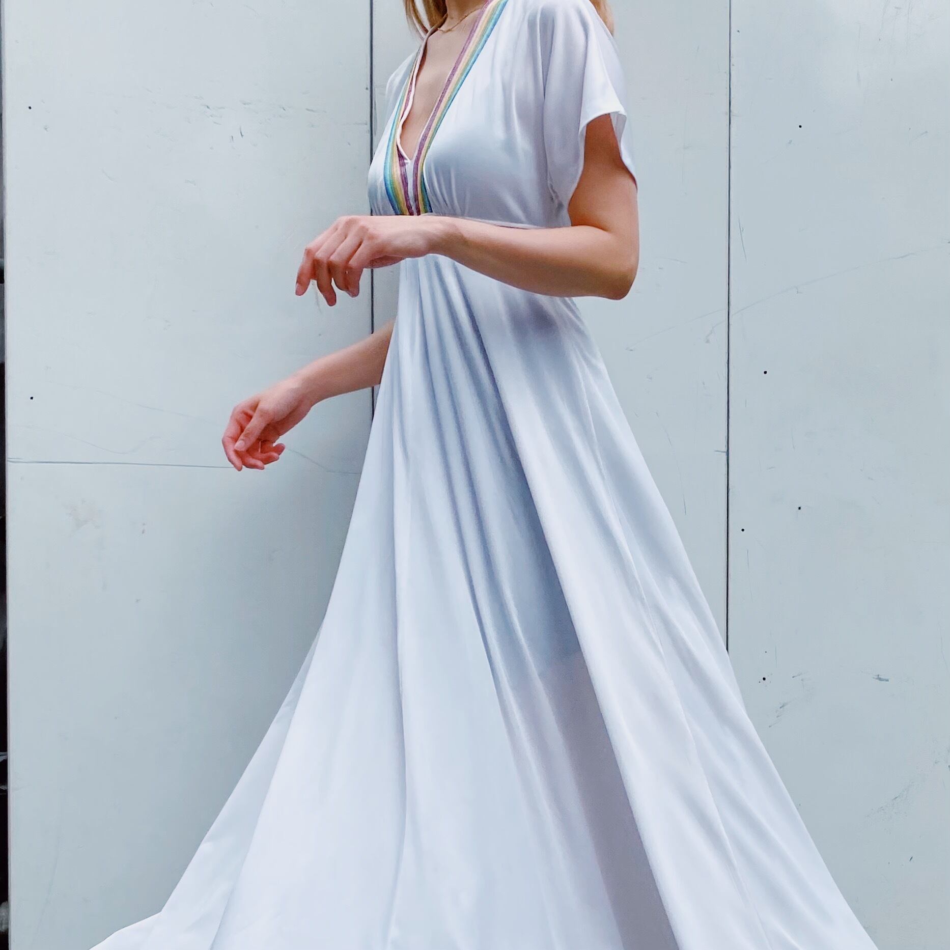 70s rainbow tape flare sleeves long dress