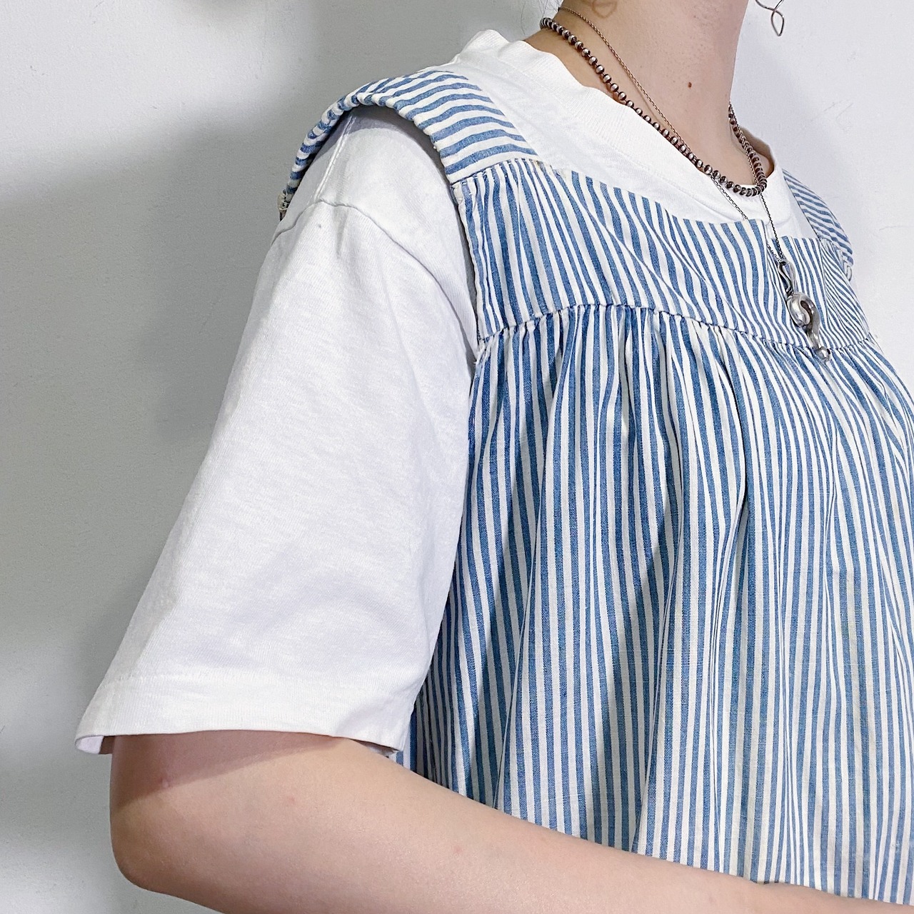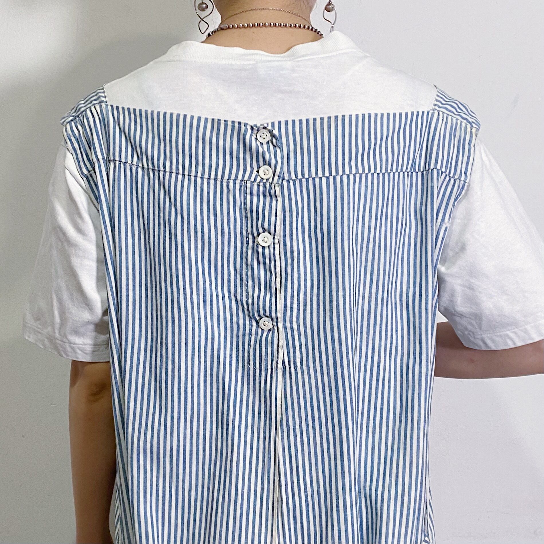 ホワイトとネイビーのヒッコリー柄が定番ながらも可愛い一枚。