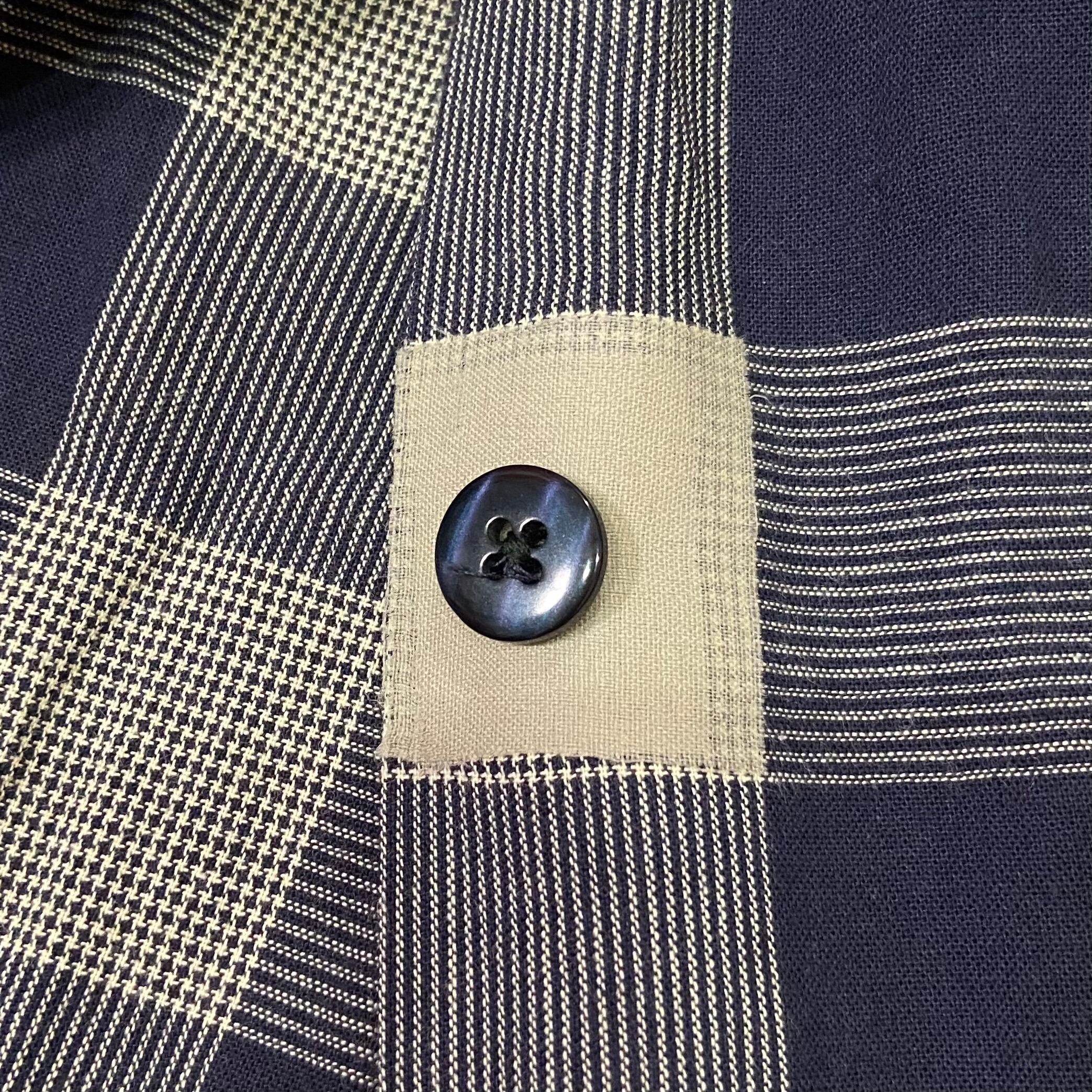 1番下のボタンの生地部分を接着芯でお直しした跡が見受けられますが、使用に問題なく目立ちません。