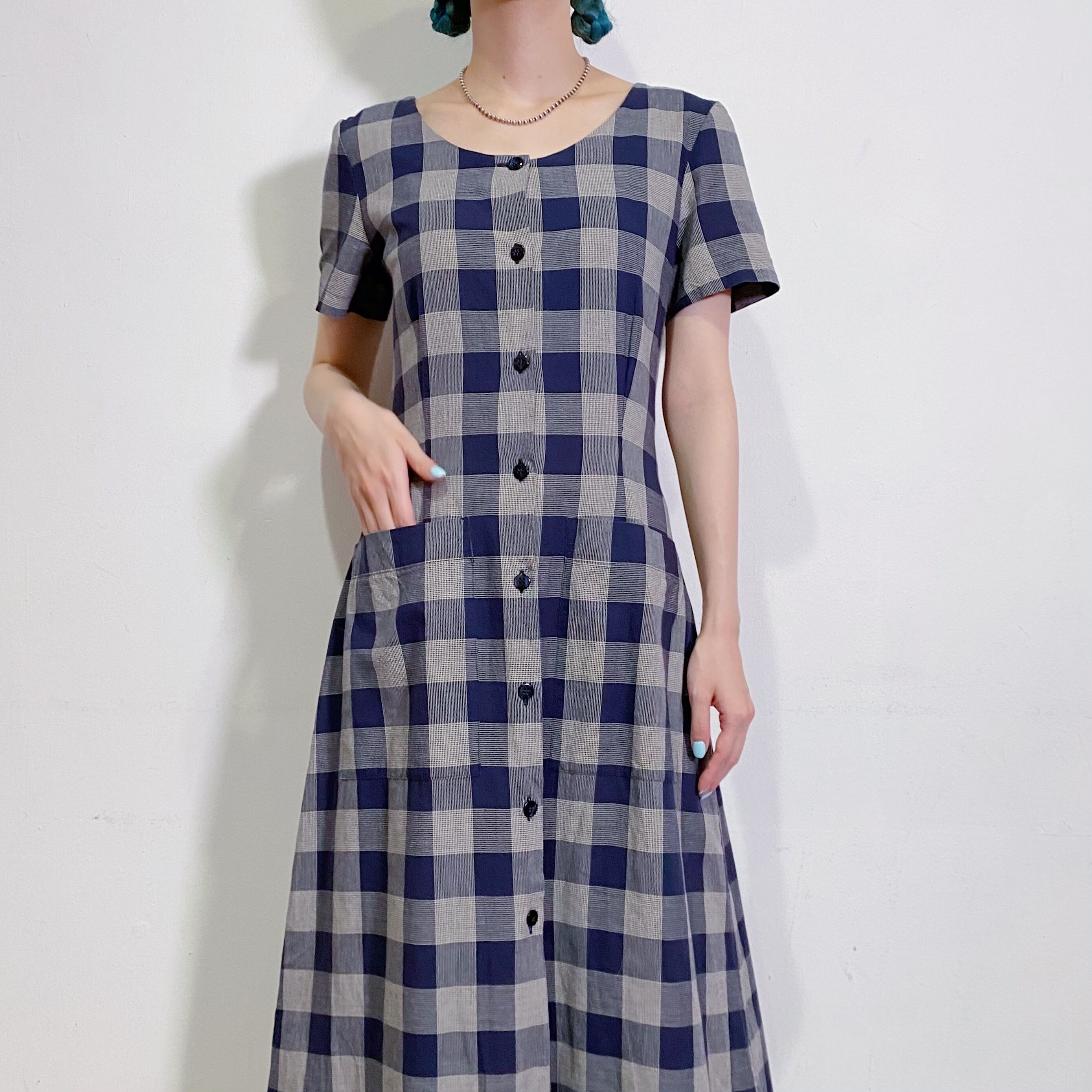 ローラアシュレイのワンピースにしては珍しい、落ち着いた色のトーンが可愛いチェックのワンピースです。