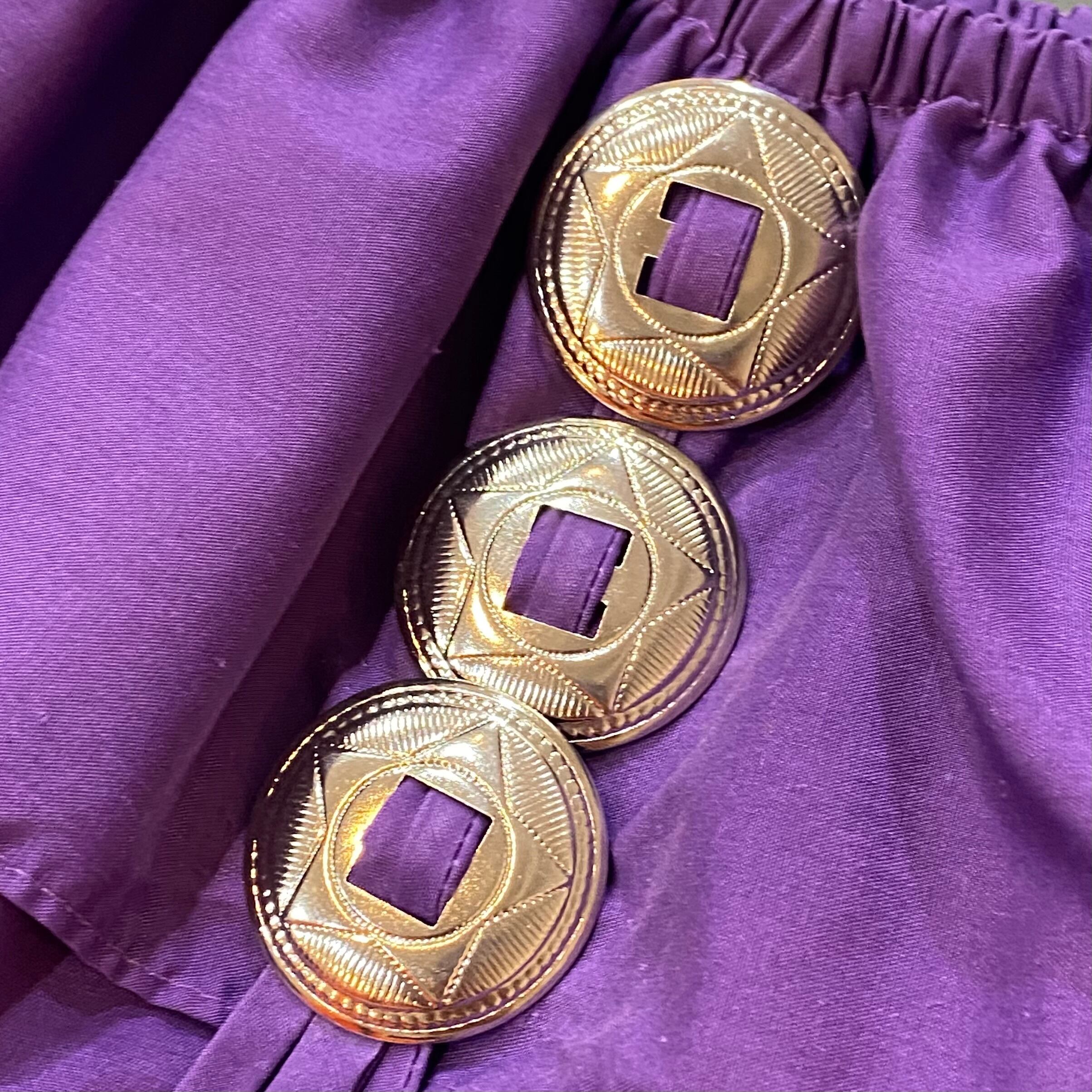 大ぶりのフリルにコンチョがポイントの、ビンテージらしいデザインのトップスです。