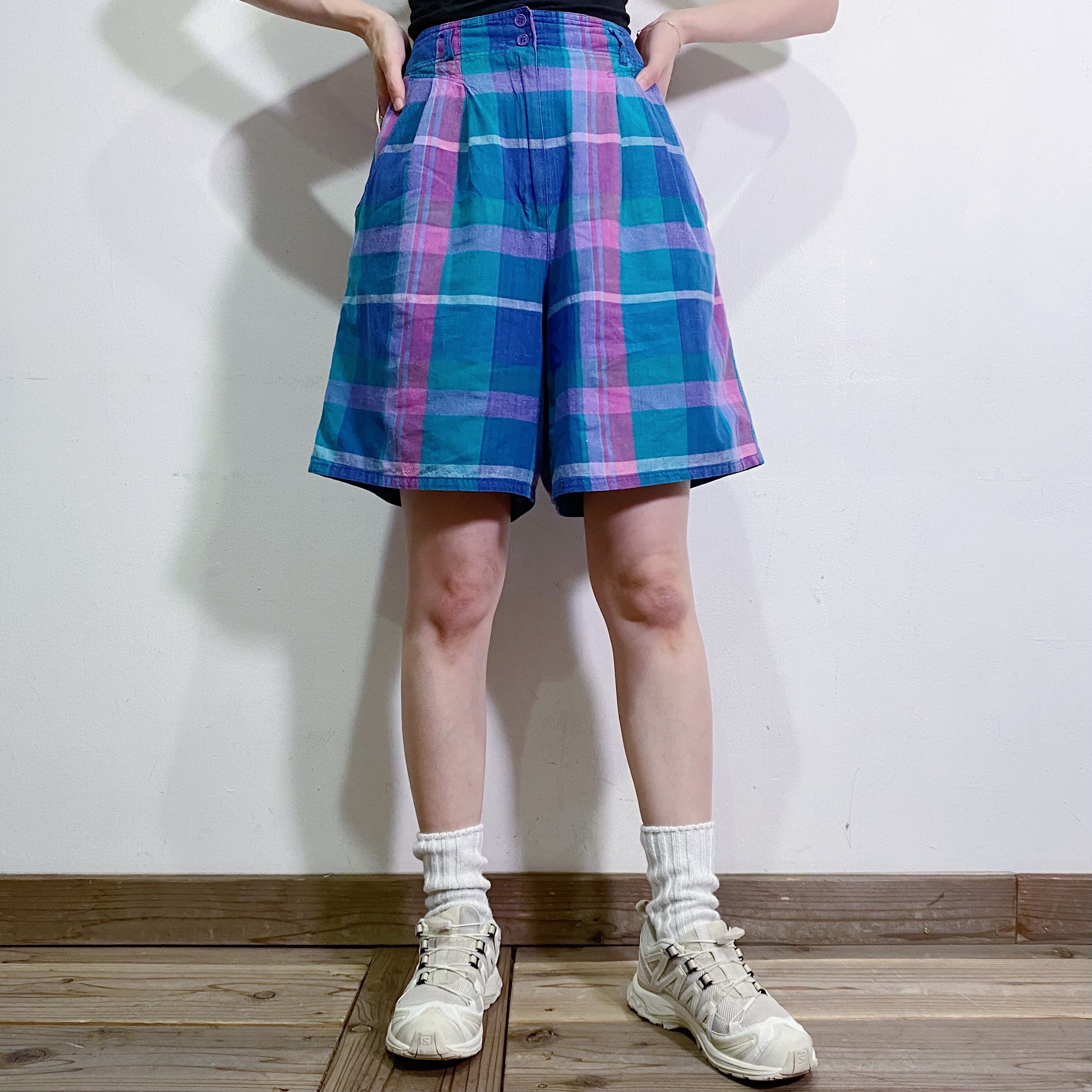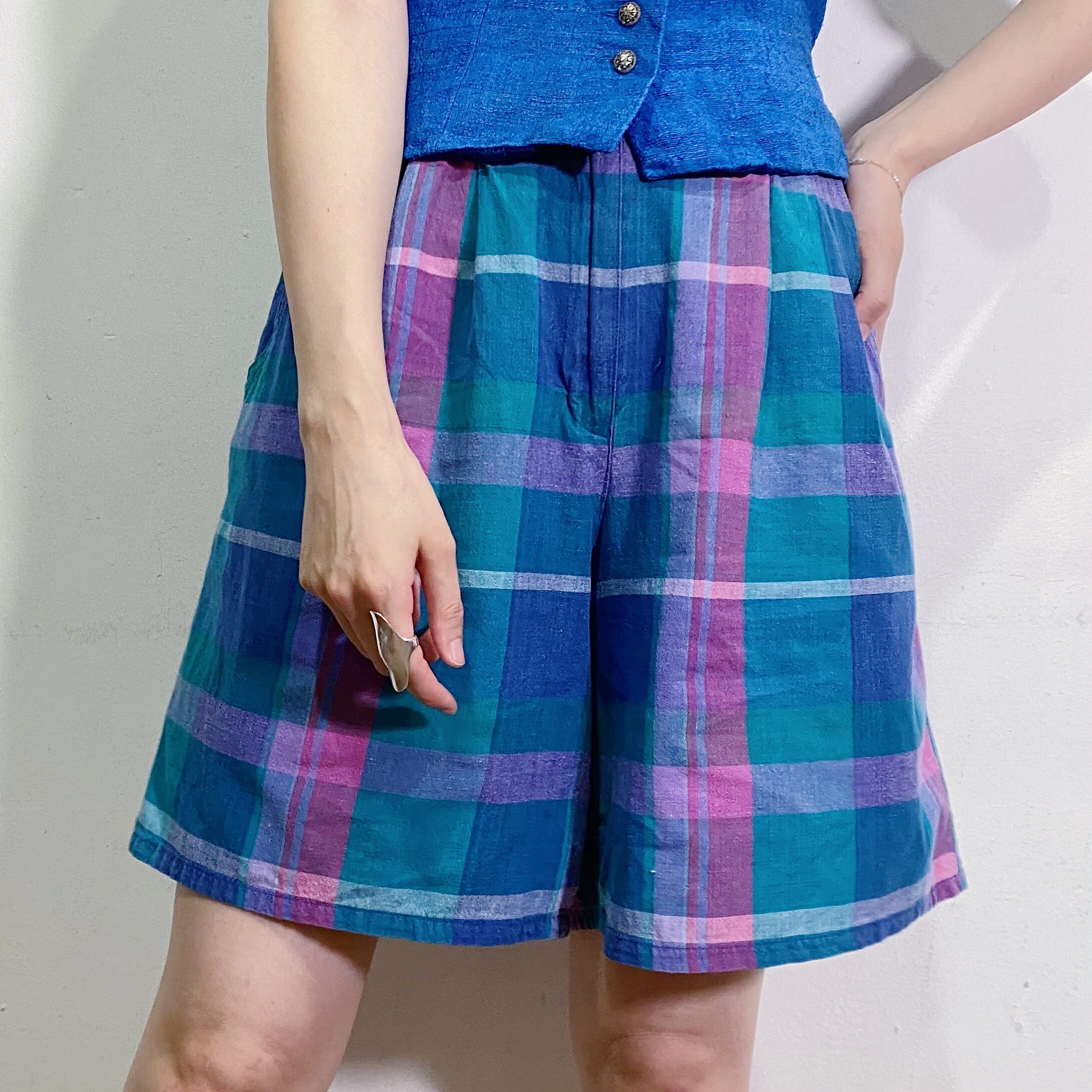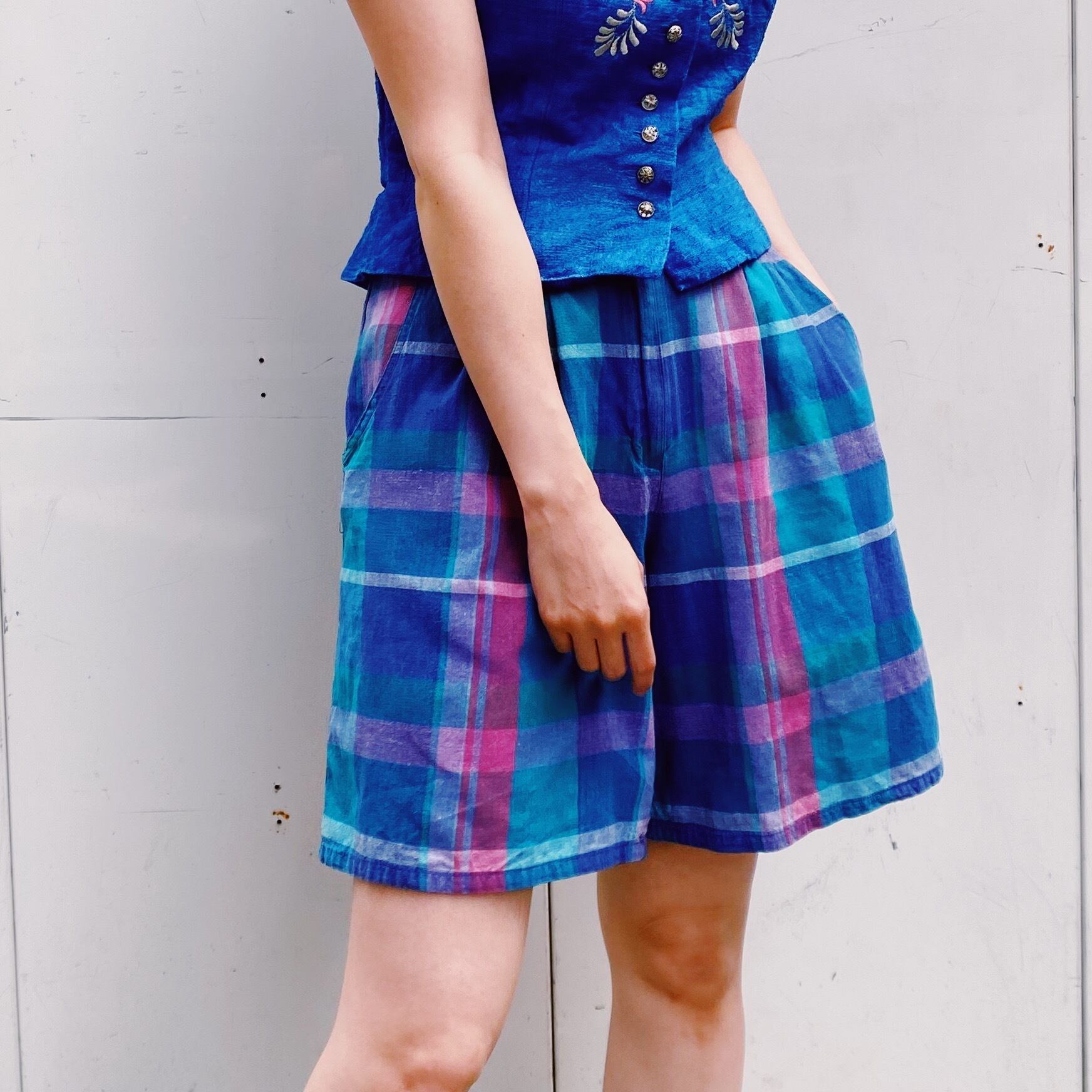ブルー×パープルのマドラスチェックが可愛い、ショートパンツです。