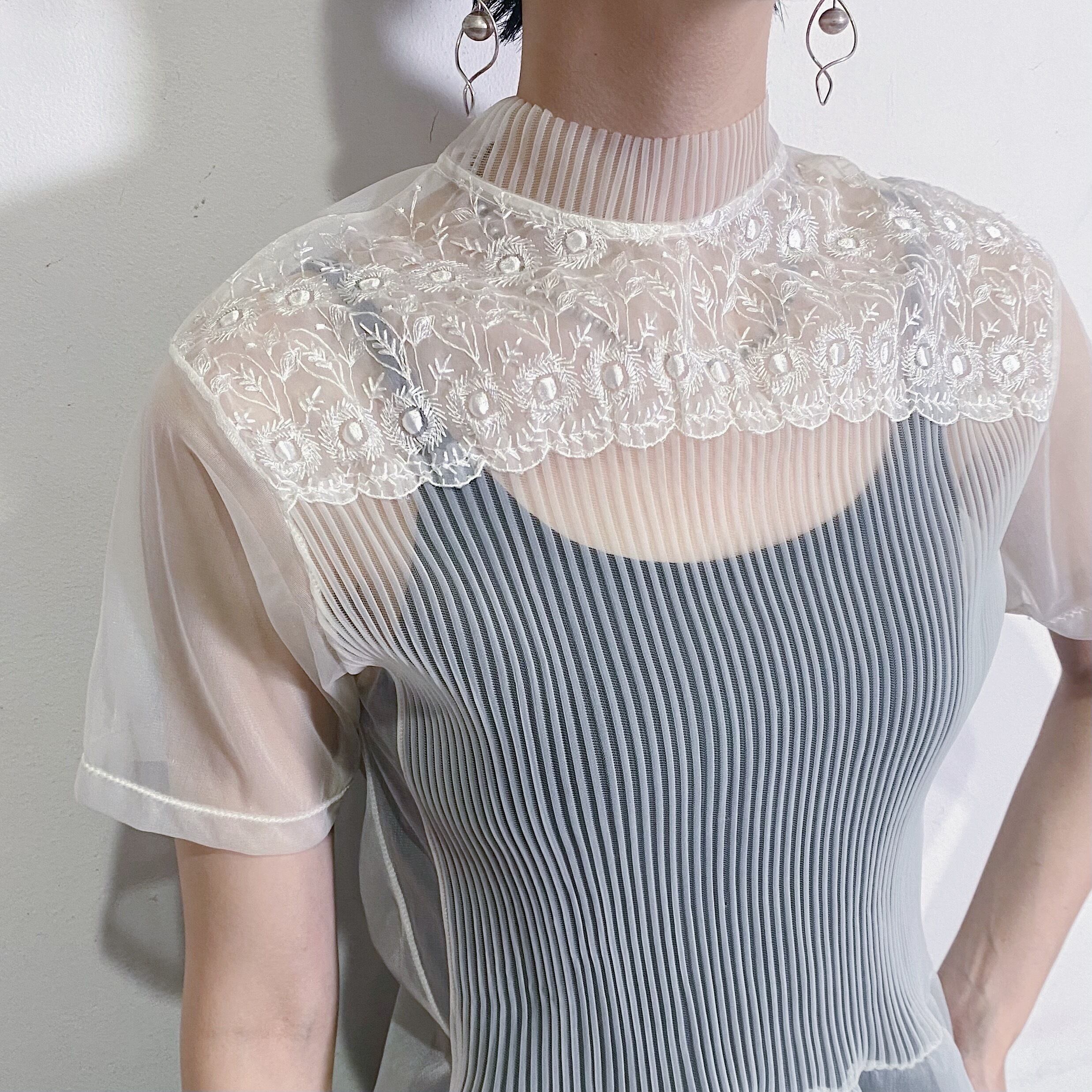 胸元の刺繍と細やかなプリーツが特徴の50年代のトップスです。
