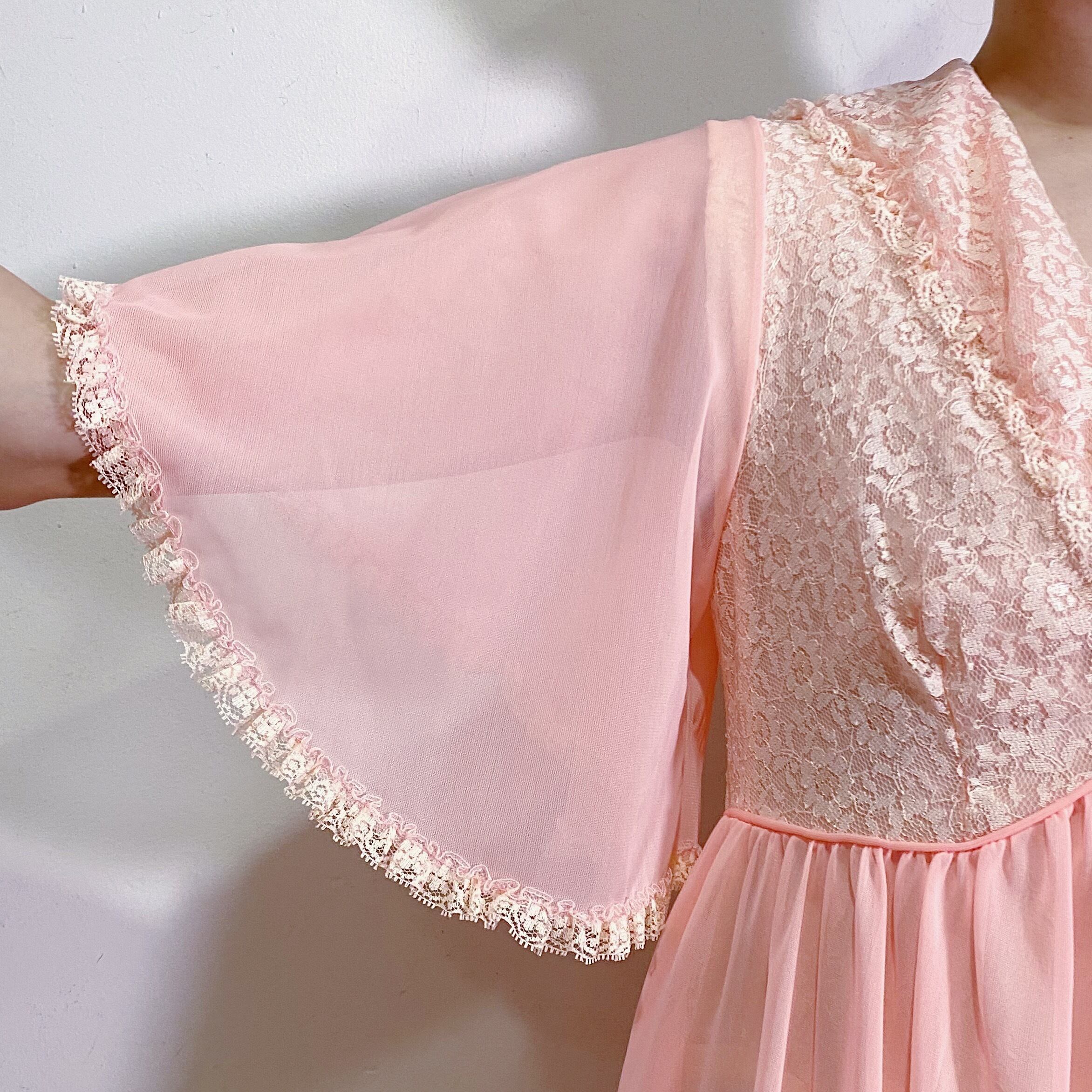 ピンクの色合いと花模様のレースが可愛い、60年代のランジェリーガウンです。