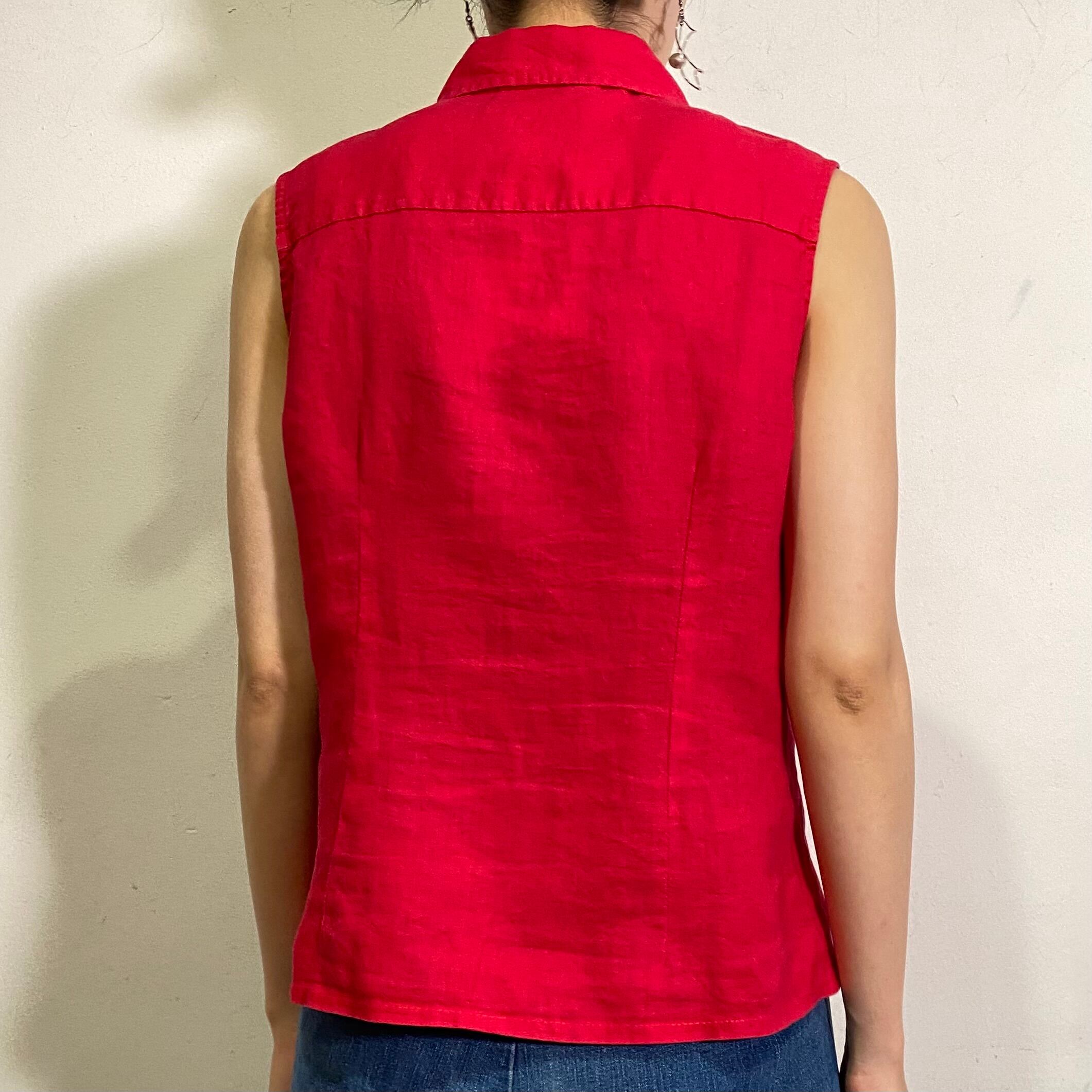 赤に近いピンクが差し色になりそうな、ノースリーブシャツです。